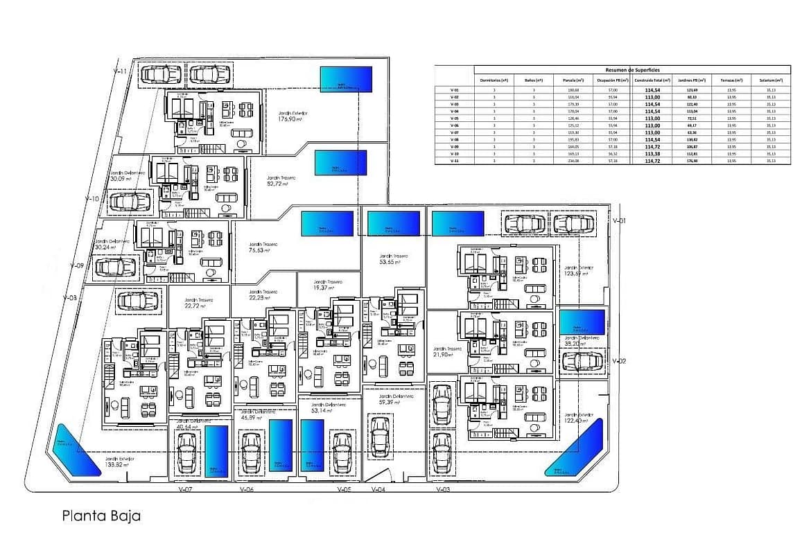 NEW BUILD TOWNHOUSES IN SANTIAGO DE LA RIBERA New Build development of 11 townhouses in Santiago de la Ribera, 100 metres from the beach! Beautiful properties with 3 bedrooms and 3 bathrooms, open plan kitchen with living room, fitted wardrobes, terrace, solarium, private garden with swimming pool and parking space. Just 5 minutes walk along the promenade, next to the yacht club, will take you to the centre of Santiago de la Ribera, with all the services at your fingertips, street market, bars, restaurants, ice cream parlours, shops, water activities and everything you need to enjoy the Mediterranean lifestyle in the Mar Menor. Santiago has a modern feel, although it still maintains its ‘fishing village’ atmosphere. It has a very beautiful promenade, which is lined by majestic palm trees and 2 kilometres of wonderful sandy beaches. From here you can take a boat trip out across the calm waters of the Mar Menor, to the La Manga Strip on the opposite side. The main shopping area is really in the town of San Javier, but there are some some shops in the narrow streets to browse, try visiting on a Wednesday morning when there is a large street market. The villas are walking distance to shops, bars, restaurants, Dos Mares shopping centre and the fantastic beaches of the Mar Menor and 20 minutes to the popular Zenia Boulevard – everything is within easy reach! Just 30 minutes from Cartagena city and the new International Murcia airport.