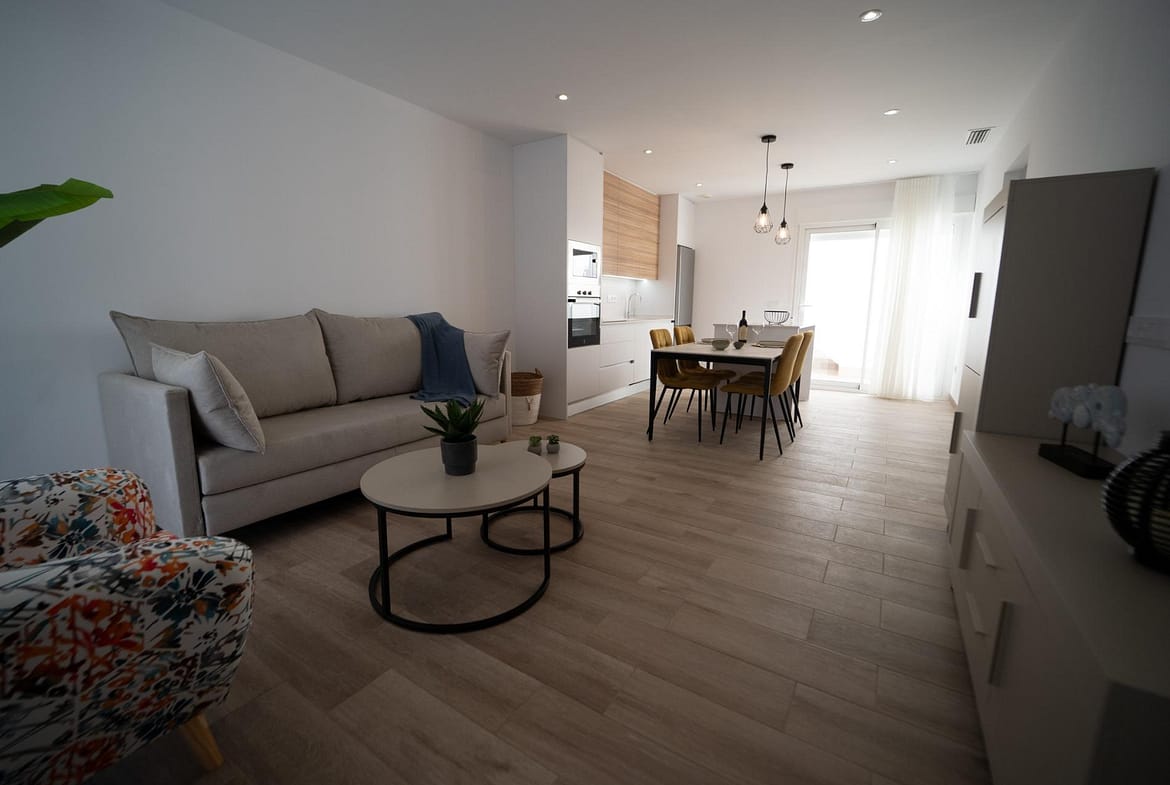 NEW BUILD TOWNHOUSES IN SAN JAVIER New Build luxury complex of 24 one level villas or on 2 floors with private pool, terraced area and solarium with Summer kitchen that allows you to enjoy all hours of sunshine, every day of the year. Each villa has 2 or 3 bedrooms and 2 fitted bathrooms on one level or 3 bedrooms and 3 fitted bathrooms on two levels. Designed with a contemporary style and open planned concept, comprising a fully-fitted kitchen and lounge-dining room. The development is located in San Javier (Murcia), near the beach, surrounded by services, parks, sports facilities and several Golf Courses. The property will meet the highest standards and will be equipped with: Private swimming pool with shower. Kitchen completely furnished and equipped with oven, microwave, fridge, integrated dishwasher, hob and extractor fan. Lighting: inside the property (dining room, kitchen, corridors and bathrooms) as well as in outdoor areas. Lined wardrobes with drawers. Fully fitted bathrooms with toilet, vanity unit, mirror and shower with screen panels. Pre-installation for ducted air conditioning. Solarium with Summer kitchen. Parking space on the plot. San Javier is close to all amenities with easy access to the beach, water sports, shops and the transport network. Here you can enjoy all of the facilities that San Javier has to offer such as the local shops, bars and restaurants as well as being near to shopping centres, the airport of Murcia and all of the beautiful places to be found along the Mar Menor. Corvera/Murcia airport is 30 minutes away and Alicante airport is 45 minutes away.