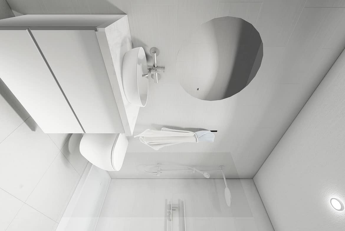Elegant bathrooms with suspended furniture, mirror with LED lighting and shower screens.