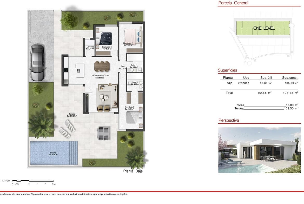 NEW BUILD ONE LEVEL VILLAS IN ALTAONA GOLF RESORT, MURCIA New Build residencial of beautiful villas in Altaona Golf resort, Murcia. Located in a privileged environment where we can live quietly, in contact with nature and the mountains, we achieve quality of life, fresh air and open spaces. One level villas build on the plots from 300 m2 with 3 bedrooms, 2 bathrooms and a private pool with multiple options where quality is our highest and where we integrate the exterior with the interior of the living place. Exclusive New Build residential located in Altaona Golf just 15 minutes by car from the center of Murcia capital and 20 minutes from the beaches you can enjoy the tranquility and security offered by the Golf Course that has 18 holes and the comfort to live close to all services. Murcias airport Corvera only 15 minutes drive away.