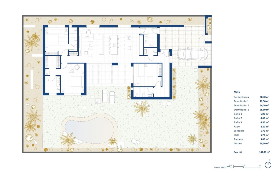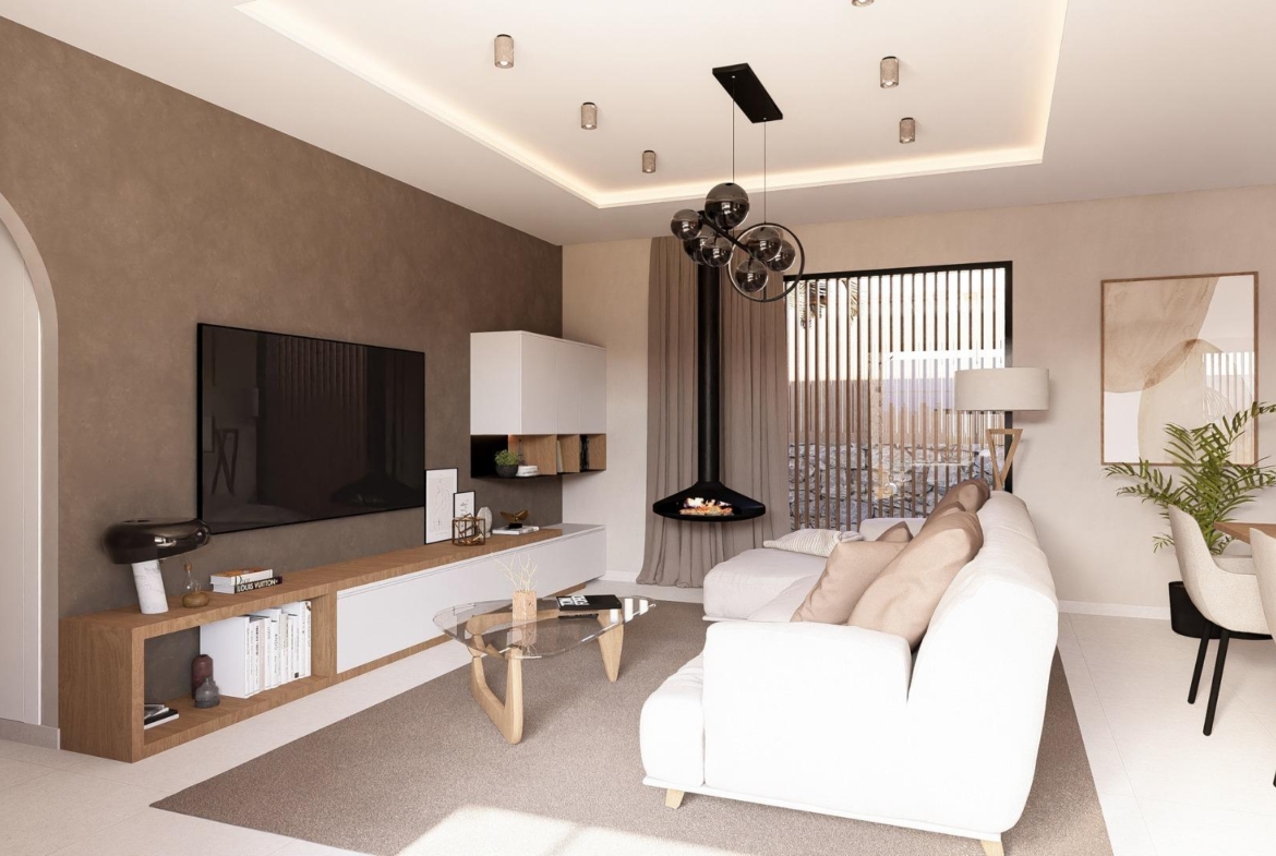 New Build villas with open plan kitchen, 3 bedrooms, 3 bathrooms, guest toilet, terrace, private garden with pool and parking space.