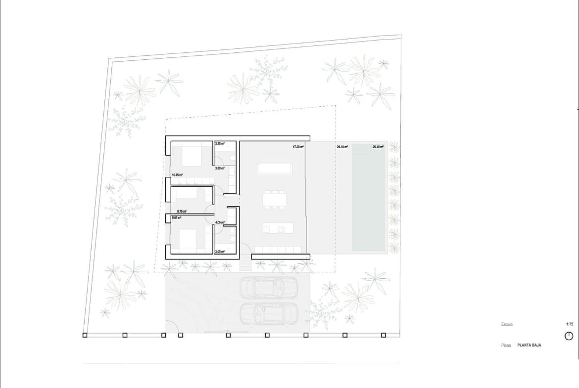 New Build Minimalist Villa in Benidorm with Private Pool Modern Single Level Villa Near Levante Beach This new build minimalist villa is located on the outskirts of Benidorm, on the beautiful Mediterranean coast of the Costa Blanca. Designed as an exclusive yet economically viable option within an increasingly competitive real estate market, this property combines functionality, contemporary design and comfort in a single level layout. Set on a 530 m2 plot, the villa is just 2.4 km from Levante Beach and only 1.5 km from the town center, where you will find supermarkets, restaurants, shopping areas, schools and all essential services. Benidorm is famous for its sandy beaches, vibrant atmosphere, marina and year round sunshine, making it an ideal destination for both permanent living and holiday investment. Functional Layout with Private Terrace and Pool The villa is distributed entirely on one floor, offering a practical and comfortable living experience. It features 3 bedrooms and 2 bathrooms, one of them en suite, making it ideal for families or those seeking extra space for guests or a home office. The spacious living and dining area connects directly to a 26 m2 terrace and private swimming pool, creating a seamless indoor outdoor flow that embraces the Mediterranean lifestyle. The outdoor area is perfect for relaxing, dining or enjoying the sunny climate throughout the year. The property also includes private parking space for two vehicles within the plot. Quality Specifications and Customization Options This modern villa is delivered with high quality finishes and contemporary installations, including: Reinforced security entrance door Automatic vehicle access gate Fully fitted kitchen with ceramic hob, extractor hood, oven and integrated microwave Aerothermal system for domestic hot water Split air conditioning system Minimalist black lacquered aluminum carpentry with thermal break and double glazing with acoustic control In addition, buyers can personalize finishes, climate control systems, photovoltaic panels for self consumption and home automation features, allowing you to adapt the property to your specific needs with a fixed and transparent price. Excellent Location and Distances Levante Beach 2.4 km Benidorm center 1.5 km Port of Benidorm 3 km Villaitana Golf 4 km Alicante Airport 60 km Your Contemporary Home in Benidorm Awaits This new build villa offers modern design, privacy and proximity to the beach in one of the most dynamic cities on the Costa Blanca. Contact us today to receive more information and secure your new home in Benidorm.