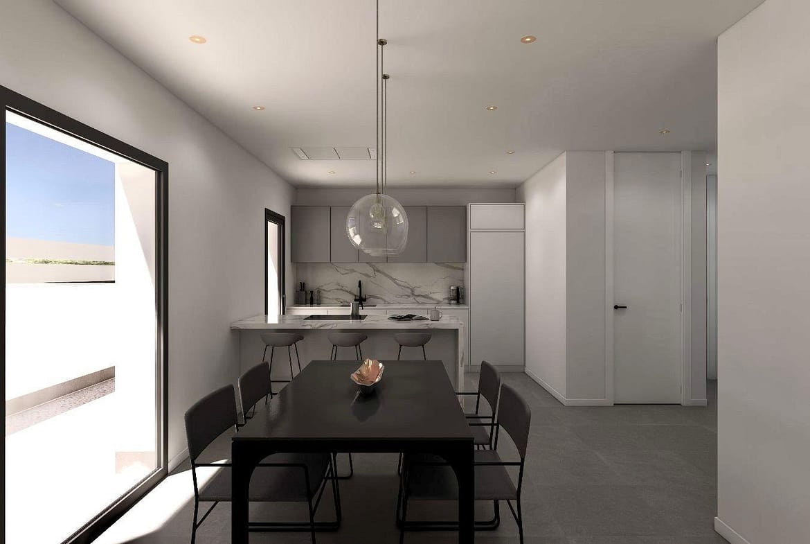 Luxury New Build Semi-Detached Villas in Benijófar – Costa Blanca Living Privileged Location in Benijófar These exclusive new build semi-detached villas are located in the charming town of Benijófar, one of the most sought-after areas on the Costa Blanca. Known for its mix of tradition and modern lifestyle, Benijófar offers all essential services including supermarkets, pharmacies, banks, restaurants, and local shops. The development is strategically positioned just 10 km from the golden beaches of Guardamar del Segura and only 30 km from Alicante Airport, making it an ideal location for both permanent living and holiday stays. Spacious and Modern Design Each villa has been designed with a contemporary style, maximizing space and natural light. The distribution includes three bedrooms (one on the ground floor and two on the first floor) and three bathrooms (including one in the basement), making them perfect for families and guests. The open-plan living room with dining area flows seamlessly into the fully fitted kitchen, creating a warm and functional environment. Large windows enhance brightness throughout the home. Premium Features and Extras These villas stand out for their high-quality finishes and thoughtful details: 66 m2 basement with bathroom, gallery and laundry area Private pool, solarium with barbecue and sink Decorative fireplace in the living room Private parking within the plot Elevator from basement to top floor 3 photovoltaic solar panels and LED lighting throughout Pre-installed air conditioning Fully fitted bathrooms with furniture and shower screens Plot sizes from 200 m2 Lifestyle and Surroundings Benijófar combines the charm of a traditional Spanish village with the convenience of modern services. Nature lovers will enjoy the nearby natural park, perfect for walking and cycling. For golf enthusiasts, La Marquesa Golf is just 5 km away, while several other top courses are within a 15 km radius. Families can visit the waterparks in Rojales (4 km) and Torrevieja (12 km), or explore the vibrant city of Torrevieja itself, only 12 km away. Excellent Connectivity The villas benefit from easy access to the N-332 and AP-7 motorways, ensuring quick connections to Alicante, Elche, Orihuela Costa, and Murcia. The area offers the perfect balance of tranquility, amenities, and accessibility. Your Dream Home in Costa Blanca Experience luxury, comfort, and Mediterranean living in these stunning new build villas in Benijófar. Contact us today for more details and to arrange a viewing of your future home.