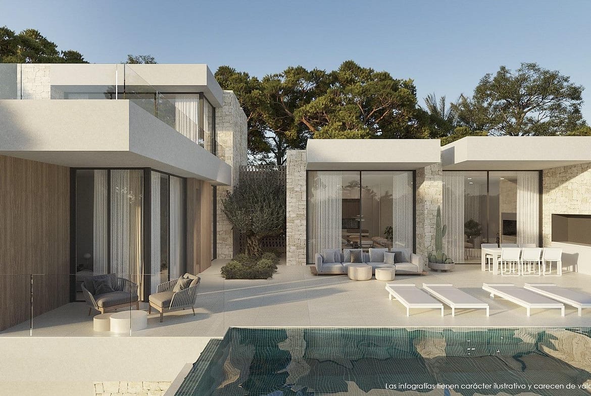 Luxury New Build Villa with Sea Views in San Jaime, Benissa Exclusive Residence in a Prime Costa Blanca Location Located in the prestigious San Jaime area of Benissa, this exceptional new build villa offers sea views, privacy and contemporary Mediterranean design just 2 km from the beach. Set on a quiet cul de sac, the property guarantees tranquility while remaining close to essential services and leisure facilities on the Northern Costa Blanca. San Jaime is one of the most sought after residential zones in Benissa Costa, known for its elegant villas, green surroundings and proximity to golf courses, beaches and charming coastal towns. The villa sits on a generous 1021 m2 plot with a total built area of 351 m2 and is currently under construction with the structure completed. Thoughtfully Designed Over Three Levels This modern villa is distributed across three carefully planned floors, combining functionality with refined aesthetics. The entrance level integrates a private garage, laundry area and technical room, ensuring that practical spaces are discreetly incorporated into the overall design. On the main floor, the open plan living and dining area connects seamlessly with a fully equipped kitchen, creating a bright and welcoming atmosphere ideal for everyday living and entertaining. This level also features two spacious bedrooms, each with its own en suite bathroom. The outdoor terrace and private swimming pool extend the living space, offering an ideal setting to relax, dine and enjoy the Mediterranean climate with beautiful sea views. The upper floor is dedicated to the master suite, complete with en suite bathroom and direct access to a large open terrace where you can enjoy panoramic views and peaceful sunsets. Premium Specifications and Modern Comfort The villa is delivered with high quality finishes and advanced systems to ensure maximum comfort and efficiency, including: Fully furnished kitchen with appliances Designer bathrooms with furniture Electric blinds Video intercom and alarm system Aerothermal system for hot water and underfloor heating Fully installed ducted air conditioning Prime Location Near Golf, Beaches and Services The property is located next to Club de Golf Ifach and close to the popular Pepe La Sal supermarket. The coastline and coves of Benissa Costa are just 2 km away. Distances to Key Points of Interest Beach 2 km Moraira 5 km Calpe 8 km Club de Golf Ifach 0.5 km Alicante Airport 80 km Valencia Airport 110 km Secure Your Dream Villa in Benissa Costa This outstanding villa combines modern architecture, sea views and a privileged location in San Jaime. Contact us today for more information or to arrange a private viewing of this exclusive new build property in Benissa.