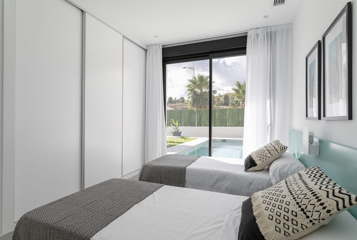 MODERN VILLAS IN CALASPARRA WITH PRIVATE POOL !!! New real estate development consisting of 215 independent villas in Calasparra. 170 villas will be built on plots of 545 m² and 45 villas on plots of 1,250 m². 2 and 3 bedroom homes with a private pool of 24.5 m2 included, modern finishes and maximum qualities: Matt black aluminum windows, motorized blinds, armored entrance door to the house, white lacquered interior doors, aerothermal system for hot water production, quartz (silestone) countertop in kitchen, electrical appliances included, pre-installation of air conditioning by ducts.
