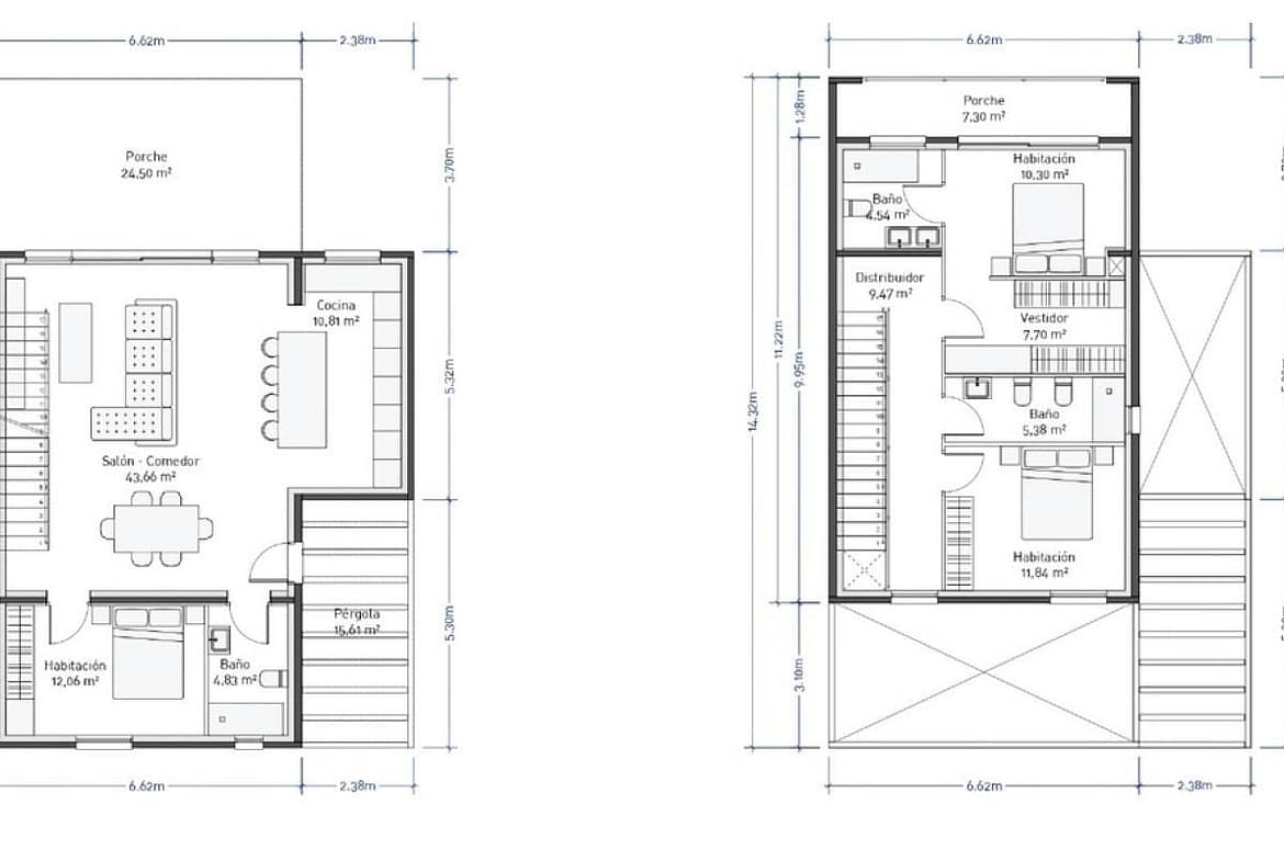 Modern New Build Villas Near Estepona Close to Beach and Valle Romano Golf Contemporary Mediterranean Living on the Costa del Sol Discover this elegant new build villa project located next to Estepona on the Costa del Sol. Designed with minimalist architecture, clean lines and bright open spaces, these homes combine simplicity, efficiency and timeless Mediterranean style. With a west facing orientation, the villas enjoy beautiful afternoon light and are ideally positioned close to golf courses, amenities and the beach. Estepona is one of the most attractive towns on the Costa del Sol, known for its charming old town, marina, sandy beaches and more than 320 days of sunshine per year. The area offers an exceptional quality of life, blending international gastronomy, local traditions and a relaxed coastal atmosphere. Buyers can choose between two villa sizes to suit their needs: 160 m2 built area on a 434 m2 plot 210 m2 built area on a 629 m2 plot Each villa is distributed over a semi basement and two main levels, offering a balanced and practical layout. The basement includes a sauna, laundry room and storage area, creating a private wellness and utility space. On the ground floor, the open plan living room and kitchen connect directly to the front terrace and private ecological swimming pool. This level also features one bedroom and a full bathroom. The first floor offers two additional bedrooms and two bathrooms, one of them en suite, along with two uncovered terraces at the front and rear of the property. Large terraces and a double balcony system extend the living areas outdoors, enhancing the connection between interior spaces and the Mediterranean environment. Energy Efficient Design and High Quality Specifications These villas are designed for modern living, prioritizing comfort, sustainability and low energy consumption. Key features include: Fully equipped kitchens and bathrooms Pre installation for ducted air conditioning with aerothermal or heat pump system Renewable energy system for hot water LED recessed lighting throughout Pre wiring for home automation Photovoltaic panels for self consumption 4 kW Energy rating Class A The construction period is approximately 14 months from purchase. Excellent Location and Distances Beach 1.8 km Valle Romano Golf 1 km Marbella 15 km Puerto Banus 20 km Malaga Airport 75 km Secure Your Contemporary Villa in Estepona This project offers a rare opportunity to own a modern, energy efficient villa in a privileged location near golf and the sea. Contact us today to receive more information and reserve your new home on the Costa del Sol.