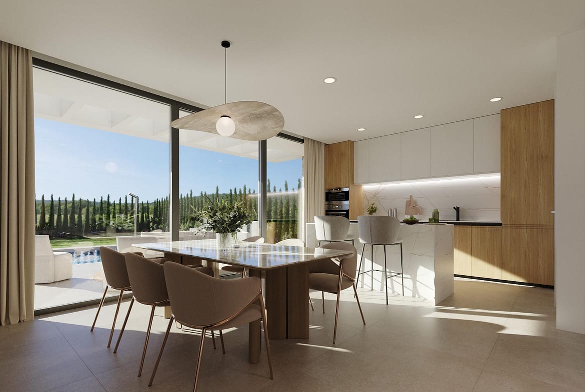 Modern New Build Villas with Sea Views in Finestrat, Alicante Exclusive Development in a Prime Location Located in one of the most sought-after areas of the Costa Blanca, this exclusive residential project offers 18 independent villas with a modern and functional design. Situated close to Finestrat (4 km) and Benidorm (5 km), the villas enjoy privileged surroundings with panoramic sea views and direct views of the prestigious Puig Campana Golf Course. Alicante International Airport is just 40 km away, making travel convenient and efficient. Contemporary Design and Spacious Layout Each villa has been carefully designed to combine elegance, comfort, and practicality. With private plots from 330 m² to 460 m², these homes are distributed across two floors, offering open and luminous spaces. Some units also include a 66 m² basement with patio, featuring two additional bedrooms, two bathrooms, and a living area, providing extra versatility for guests or leisure activities. Outdoor Living and Private Amenities Every property is delivered with a fully finished garden, private swimming pool, perimeter fencing, and pedestrian and vehicle access gates. The rooftop solarium offers the perfect space to relax, enjoy the sun, and admire breathtaking Mediterranean views. The spacious terraces and landscaped areas are designed for outdoor living, making the most of the region’s exceptional climate. Interiors with Premium Finishes The ground floor features an open-plan concept with living room, dining area, and fully equipped modern kitchen with quartz worktop and integrated appliances. Floor-to-ceiling windows flood the home with natural light and create seamless indoor-outdoor living. A ground-floor bedroom adds flexibility, while the upper floor hosts two more bedrooms, including the master suite with walk-in wardrobe, private bathroom, and 30 m² terrace with sea views. High-quality finishes include white lacquered interior carpentry, fitted wardrobes, thermal break exterior carpentry, motorized shutters in bedrooms, and 3 bathrooms with designer furniture, suspended toilets, and glass screens. Lifestyle and Surroundings These villas offer a privileged lifestyle close to golden beaches, shopping centers, and family attractions such as Terra Mítica Theme Park (5 km). For golf lovers, Puig Campana Golf (1 km) and Villaitana Golf (6 km) with its two Nicklaus Design courses provide a world-class experience. Your New Home on the Costa Blanca Whether as a holiday home or permanent residence, these modern villas in Costa Blanca combine luxury, location, and comfort. Contact us today to arrange a visit and take the first step towards your dream home in Spain.