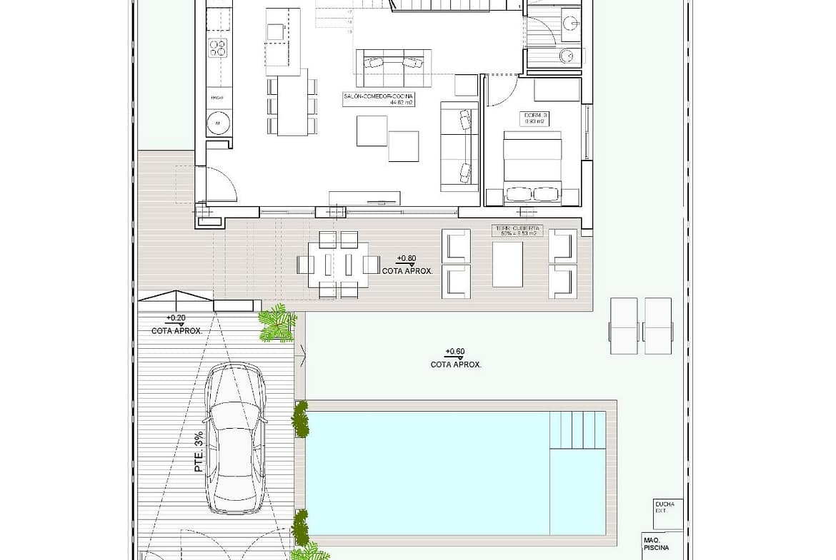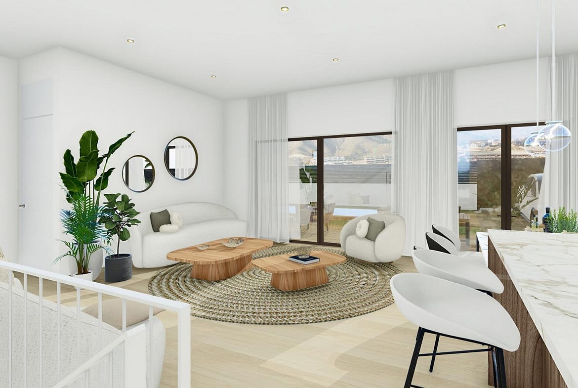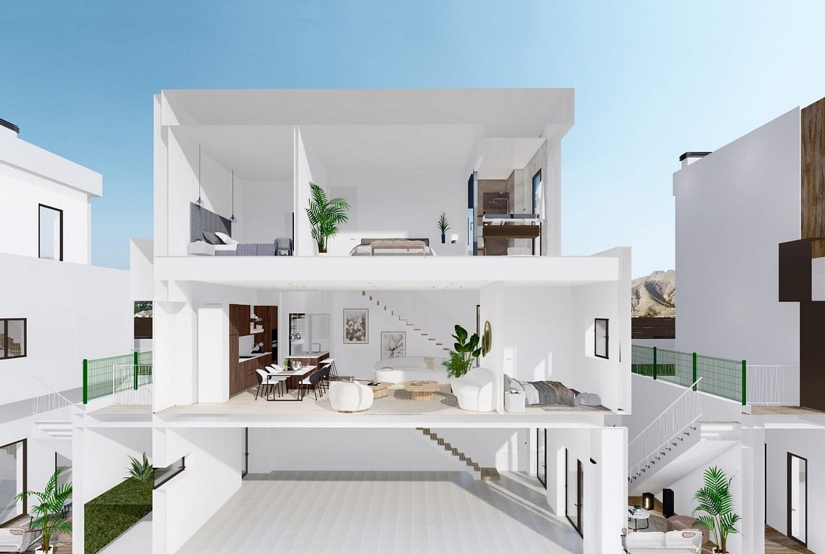 NEW BUILD VILLAS IN FINESTRAT Residential of modern villas has been meticulously designed to capture the beauty of Sierra Cortina and the Mediterranean in every corner. Villas build over 2 floors and has 3 bedrooms, 3 bathrooms, open plan kitchen with lounge, build-in wardrobes, equipped kitchen, private garden with the pool and parking. Residential located ​next to two golf courses, theme parks, a large shopping centre and a few minutes from the beaches of Benidorm Finestrat located in the Marina Baixa region of the Costa Blanca, close to neighbouring Benidorm and about 40 kilometres from the city of Alicante and the international airport. Benidorm is just a five-minute drive from the properties and offers all the services you would need including shops, bars, restaurants, supermarkets, banks, pharmacies and several private international schools. Close to the beaches of Levante, Poniente and Cala de Finestrat, with more than 6km in length that are among the best in Europe awarded by the European Union with Blue Flags. All leisure services such as the theme parks of Aqua Natura, Terra MĂtica, Terra Natura, Aqualandia and Mundomar, Sierra Cortina and Villaitana Golf courses, hiking and climbing in Puig Campana an incomparable natural setting or enjoy of nautical sports.