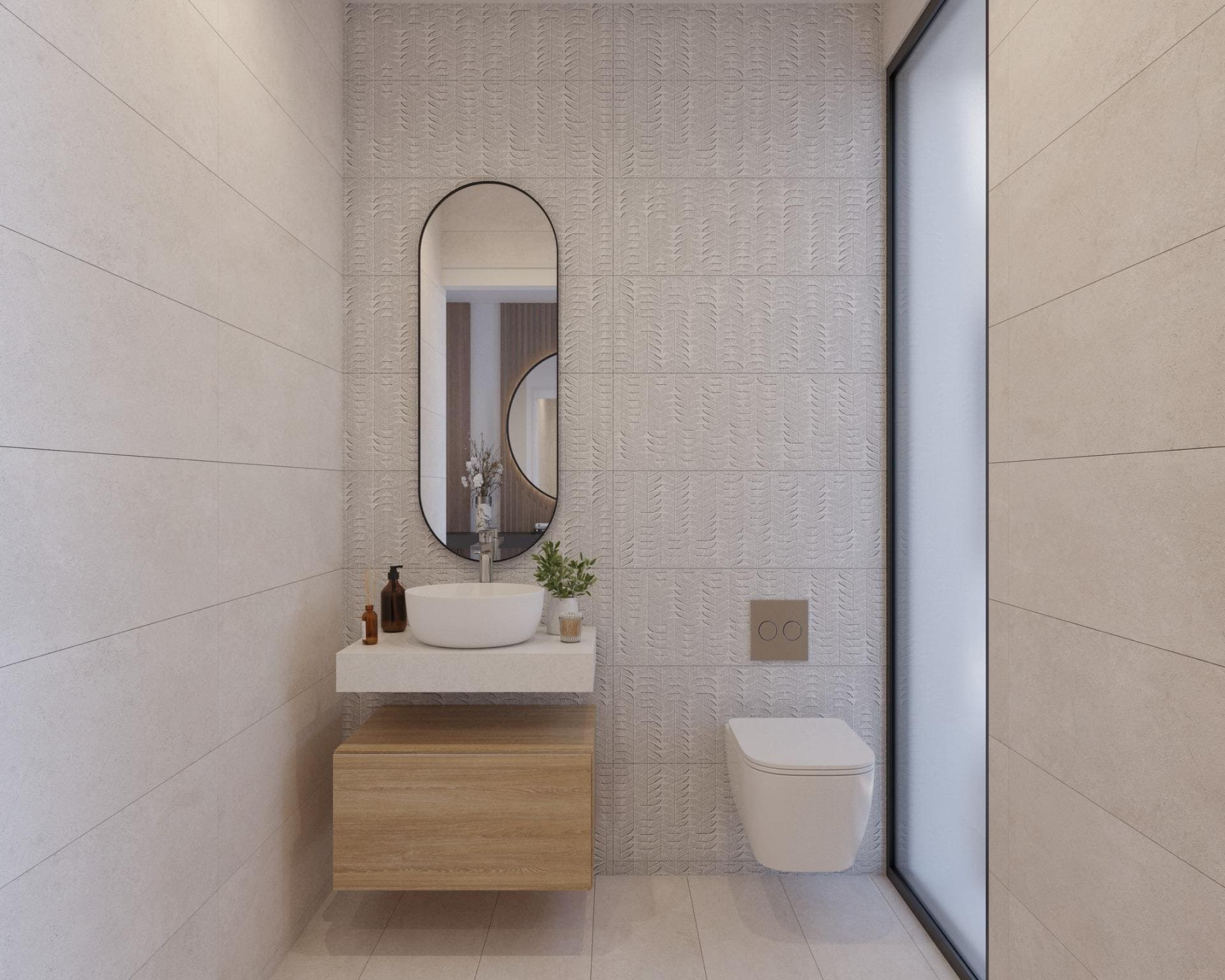 Bathrooms with furniture, mirrors, and shower screens