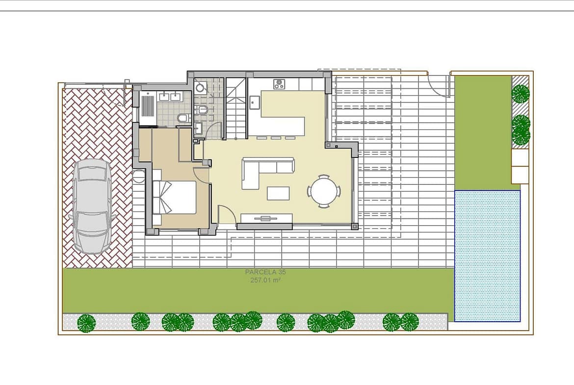 Located in the tranquil neighborhood of La Herrada, Los Montesinos, these new build villas offer a perfect blend of modern living and peaceful surroundings. Each villa in this beautiful development has been thoughtfully designed to maximize comfort and functionality, featuring three bedrooms and two bathrooms, ideal for families or couples. The open-plan kitchen connects seamlessly with a spacious lounge, providing a cozy and inviting space for gatherings. Additionally, fitted wardrobes and electric blinds enhance convenience and style.