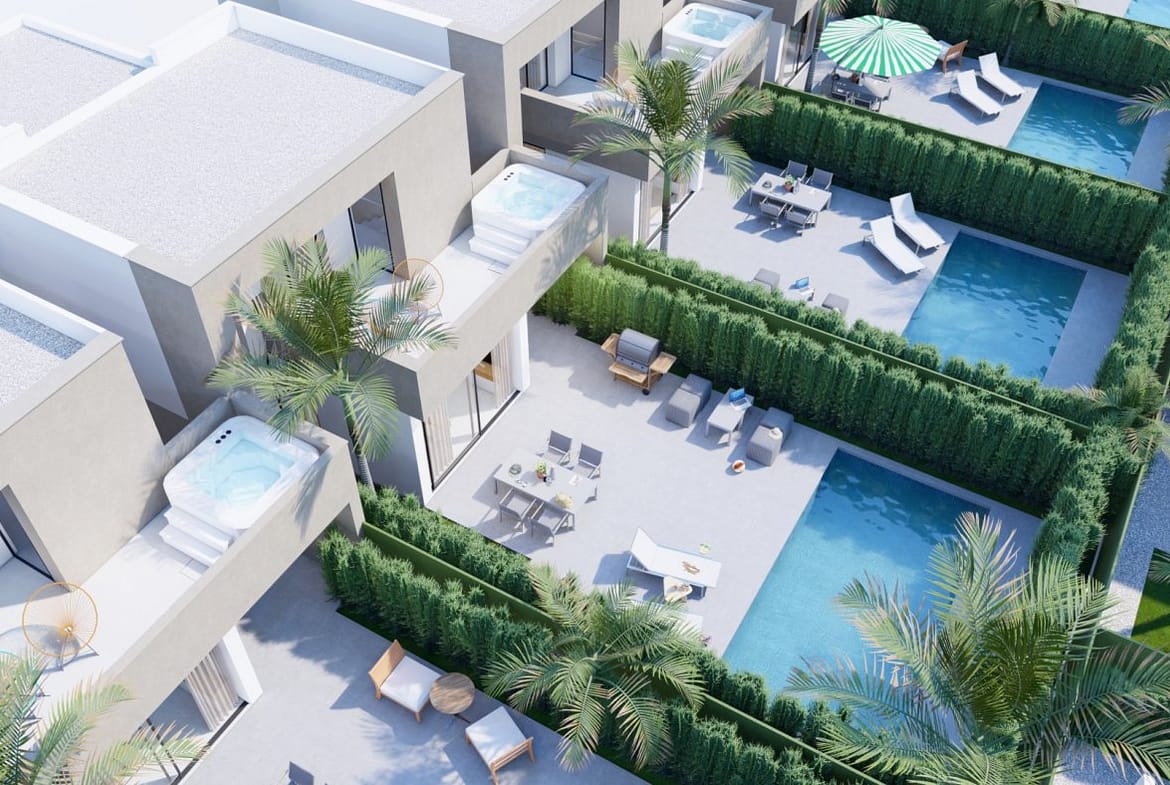 NEW BUILD VILLAS IN LOS URRUTIAS, MURCIA New Build modern villa at 200m from the beach. The luminous villa build over 2 floors, has 3 bedrooms and 3 bathrooms. The living room gives access to the terrace with private pool of 6m x 3m. The open kitchen is fully equipped with household appliances and standard household items. The villa also has an air-conditioning system (hot/cold) and comes fully furnished with curtains and bed linen. The balance between price, quality and location ensures that the house is ideal as an investment for letting. OBLIGATORY TO PUT IN HOLIDAY RENTAL! This small-scale project is the ideal combination of holiday and investment property. If you are looking for peace and quiet and want to be within 200 metres of the beach and promenade, then this is your location. The project is located in Estrella de Mar, an idyllic urbanisation just outside the quiet fishing village of Los Urrutias on the Mar Menor. In this urbanisation you will find a number of restaurants, a supermarket and bars. And all other amenities are available in the immediate vicinity (church, pharmacy, newspapers and much more). Development located 43 km from Murcia, 16 km from Cartagena and only a 10-minute drive from Los Alcazares, a typical Spanish seaside town where there is activity in winter and summer. Los Urrutias is a municipality in the autonomous community (comunidad) of Murcia and is located on the Costa Calida with a view of La Manga, the narrow strip of land (length 22 km and width up to 1.5 km) that separates the Mar Menor from the open waters of the Mediterranean.