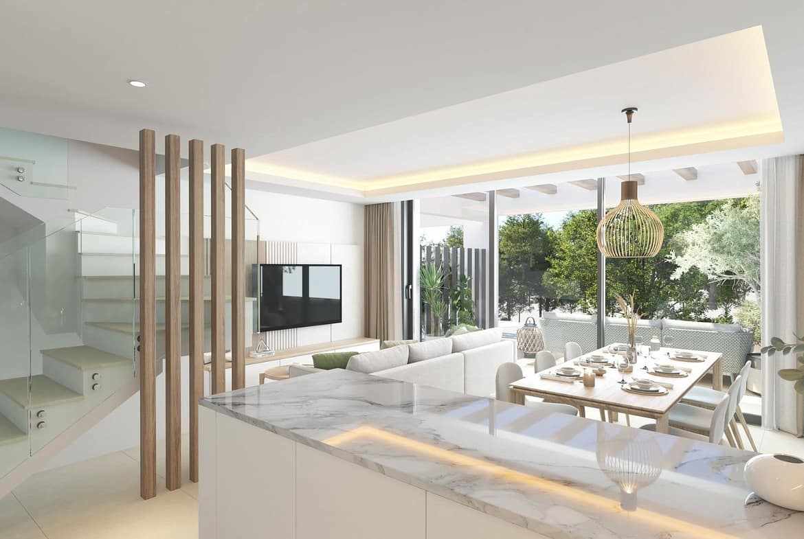 New Build Townhouses in El Chaparral Mijas Modern Living Near the Sea Exclusive Residential Development in El Chaparral Mijas Welcome to this boutique new construction project located in the peaceful pine covered hills of El Chaparral Mijas. This exclusive residential complex consists of only 22 contemporary three bedroom townhouses designed to offer privacy comfort and a refined Mediterranean lifestyle. El Chaparral is a highly regarded residential area known for its natural surroundings proximity to the coast and easy access to key destinations along the Costa del Sol. Contemporary Homes with Flexible Layouts The development offers a selection of townhouses and corner units carefully designed to maximize light space and privacy. Each home is distributed over two main floors plus a private rooftop solarium. On the ground floor you will find an open plan living and dining area with integrated kitchen, laundry room, guest toilet and direct access to the terrace and private garden. The upper floor features three double bedrooms and two bathrooms including a master bedroom with en suite bathroom. Some units include an underground level that can be customized as a games room, home gym or private cinema room depending on your lifestyle needs. Parking is included either open air or underground depending on the property type. Private Solarium with Sea Views The rooftop solarium provides an ideal space to enjoy the Mediterranean climate and open sea views. This area offers the option to install a plunge pool and a summer kitchen creating a perfect setting for relaxation and entertaining. High Quality Specifications and Modern Comfort All homes are built with premium finishes and modern technology. Features include fully installed air conditioning, heating by aerothermal system and fully equipped kitchens with high end Siemens appliances. Floor to ceiling glass windows enhance natural light and create a seamless connection between indoor and outdoor living areas. The orientation of each home has been carefully planned to ensure privacy and optimal use of Mediterranean light. Resort Style Communal Areas Residents can enjoy a complete leisure area designed for wellbeing and relaxation. Facilities include a fully equipped gym, sauna and jacuzzi. Outdoors, the communal swimming pool and children pool are surrounded by tropical gardens offering a calm and family friendly environment. Prime Location Near Golf Beaches and Towns El Chaparral Golf Club is just moments away making this an excellent choice for golf lovers. The sandy beaches of Mijas Costa are approximately 0.8 km away and easily accessible on foot. La Cala de Mijas with its restaurants shops and beach promenade is nearby while Fuengirola Marbella and Puerto Banus are all within a short drive. Key Distances to Points of Interest Beach of Mijas Costa: 0.8 km El Chaparral Golf Club: 1 km La Cala de Mijas: 3 km Fuengirola: 6 km Marbella: 20 km Puerto Banus marina: 22 km Malaga Airport: 30 km Your New Home on the Costa del Sol Enjoy tranquillity design and a prime coastal location in one of the most attractive areas of Mijas. Contact us today to receive more information or to arrange a private viewing of these exclusive new build townhouses.