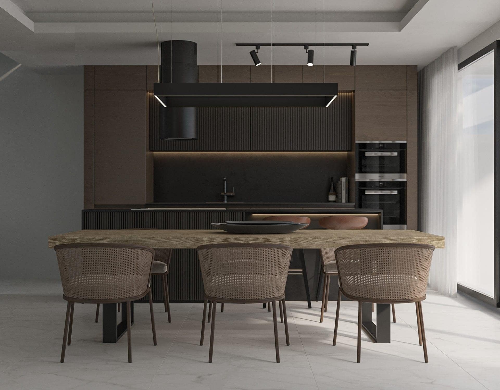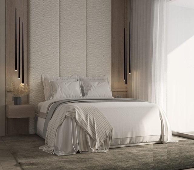 Luxury Flooring and Carpentry: Large-format porcelain tiles and aluminum double-glazed windows.