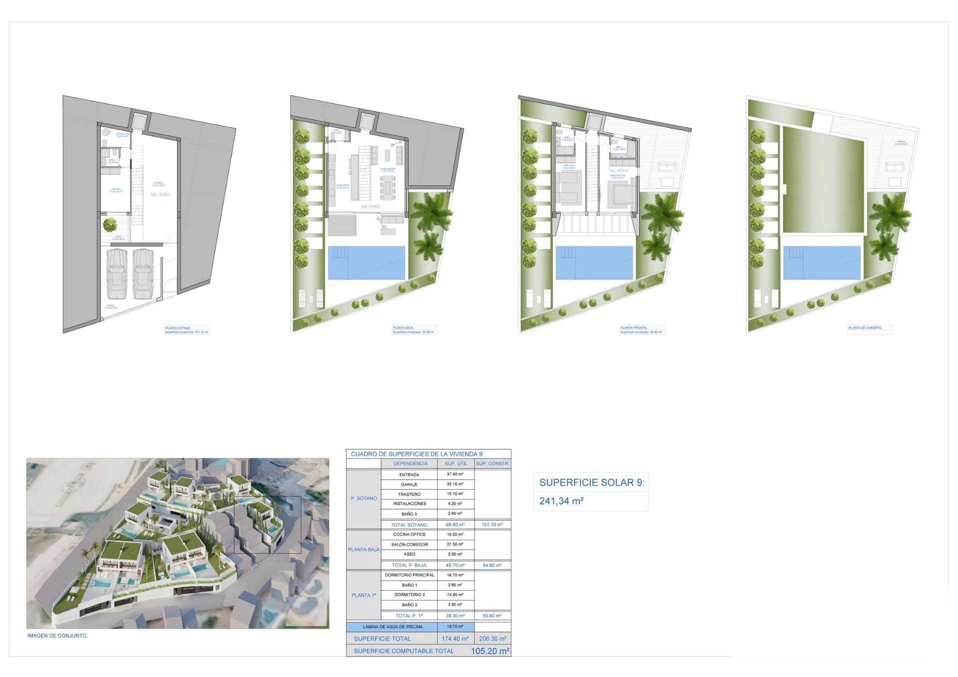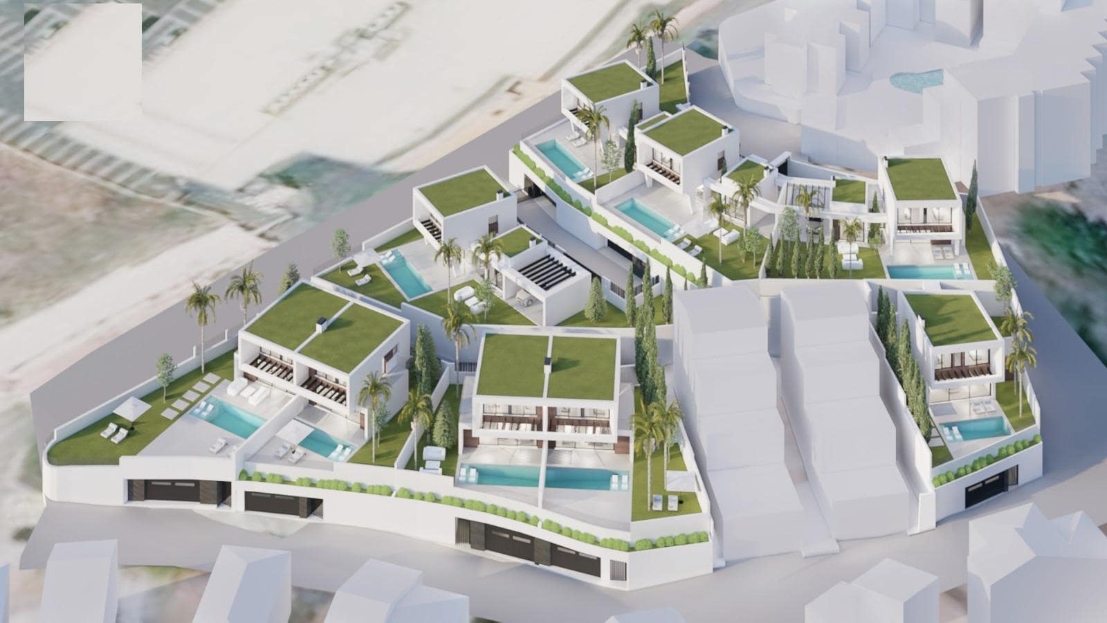 Double Garages and Rooftop Terraces (on some units) with panoramic sea views.