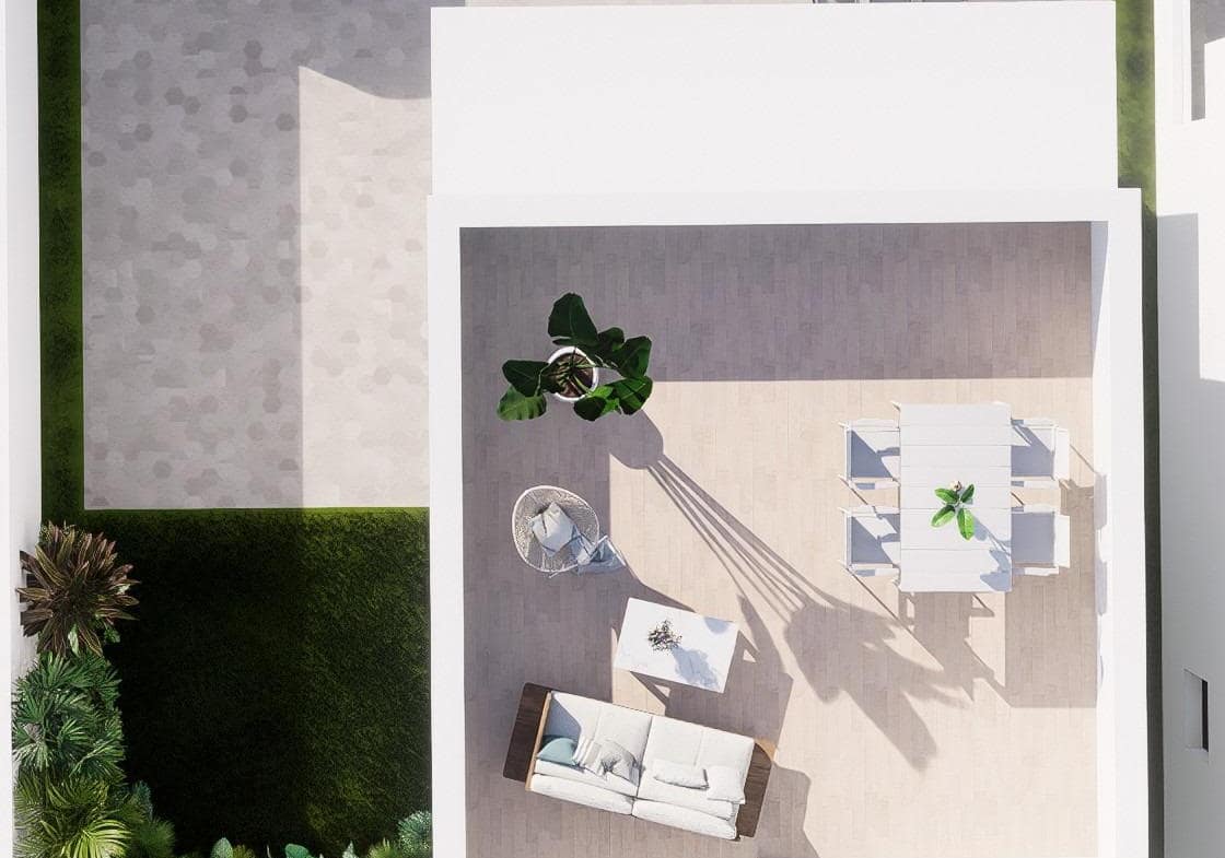 Modern properties build over 3 floors, has 3 bedrooms, 2 bathrooms, open plan kitchen with living area, fitted wardrobes, Air Conditioning by conduit, basement, solarium, private garden with the pool and parking space.