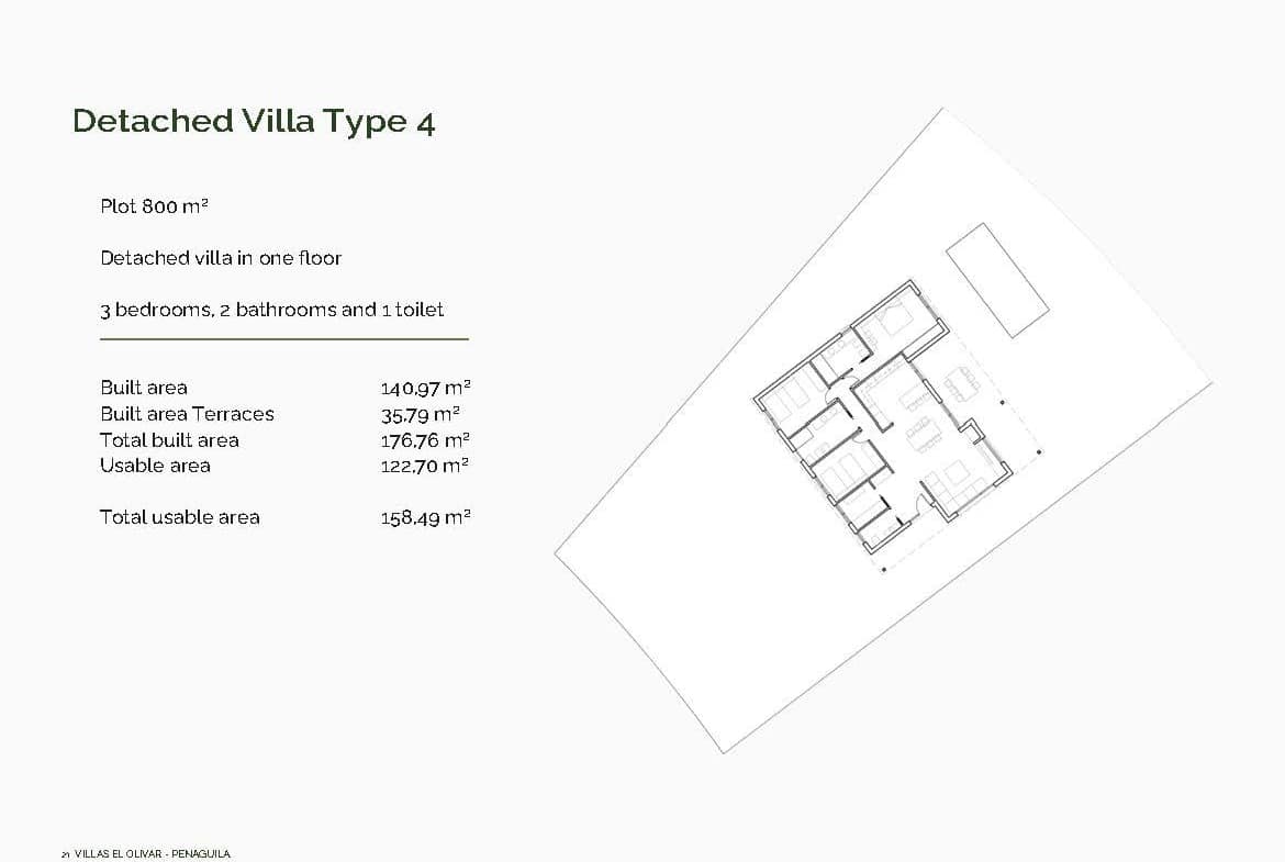 New Build Villas in Penáguila – Tranquility and Nature in the Heart of Sierra de Aitana, Alicante Discover an exceptional opportunity to live surrounded by nature in a peaceful environment with stunning mountain views. This new development of 35 single-storey villas is located next to the charming village of Penáguila, nestled in the heart of the Sierra de Aitana in Alicante. With generous 800 m² plots, these homes offer privacy, comfort, and direct contact with the natural surroundings. Spacious Homes with Custom Layouts Each villa sits on a private plot of 800 m² and is distributed over one floor, offering maximum comfort and accessibility. Choose from 5 different layouts with 3 or 4 bedrooms, 2 or 3 bathrooms and built areas ranging from 130 to 178 m². All homes feature large covered terraces, ideal for enjoying the outdoor lifestyle year-round. This development is perfect for families, retirees, or anyone seeking a primary or secondary residence in a quiet, healthy setting, yet close to essential amenities. High-Quality Finishes and Sustainable Systems The villas are built with top-quality materials and modern, energy-efficient installations, including: PVC exterior carpentry with double glazing and electric shutters Underfloor heating via aerothermal system Domestic hot water also powered by aerothermal energy Covered parking with a metal pergola and photovoltaic solar panels Fully furnished kitchens with upper and lower cabinetry This focus on sustainability not only improves comfort but also reduces long-term energy costs. A Privileged Location Between Mountains and Coast Located just minutes from the center of Penáguila, a picturesque village known for its peaceful atmosphere and traditional charm, these villas are perfectly positioned between mountain serenity and coastal convenience. Distances to key points of interest: Alcoy: 20 km Benidorm: 38 km Alicante city: 52 km Alicante Airport: 60 km Nearest golf course (Alenda Golf): 45 km Beaches of Villajoyosa and Benidorm: approximately 45 km This location offers excellent access to both the interior and the coast, making it ideal for nature lovers who still want to be within reach of urban services and beach resorts. Reserve Your Dream Villa in the Sierra de Aitana Two villas are already under construction and will be delivered in just 4 months. The remaining units are available with a 12-month delivery timeline from reservation. Contact us today to learn more and secure your new home in Penáguila – where comfort meets nature.