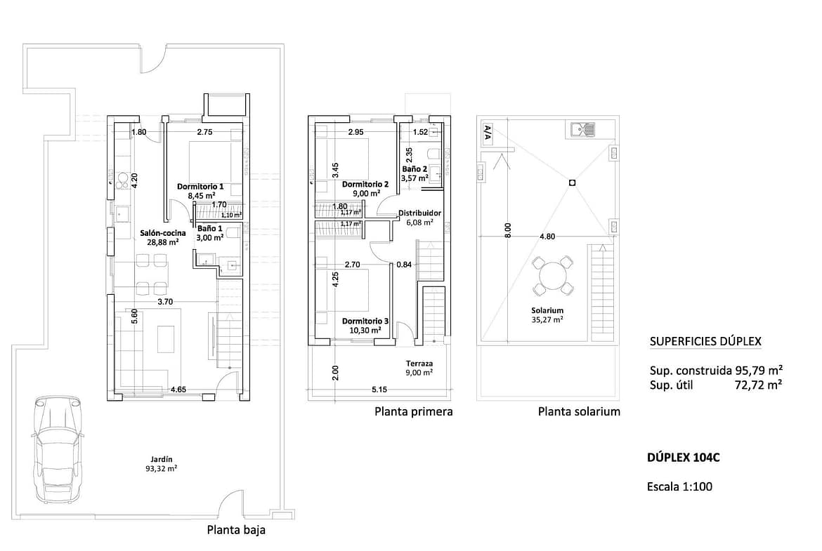 Villa has 3 bedrooms, 2 bathrooms, open plan kitchen with the lounge area, fitted wardrobes, terrace, private solarium, garden and parking space.