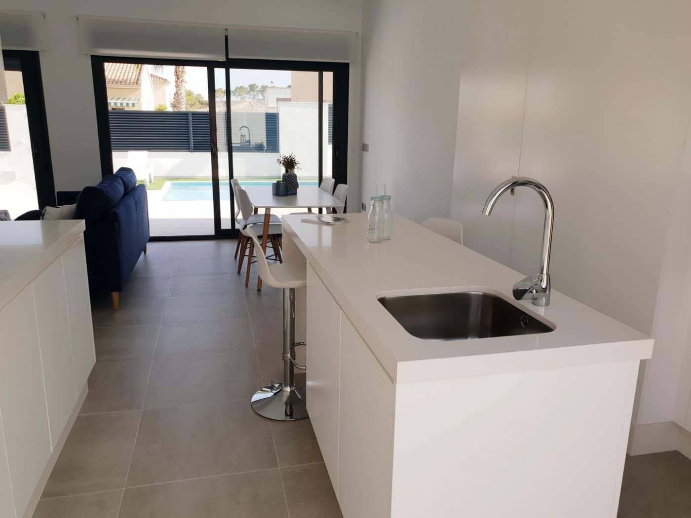 NEW BUILD VILLAS IN PINAR DE CAMPOVERDE New Build modern residential of villas in Pinar de Campoverde Small development of only 15 villas, 9 of which are built in one story with a distribution of 3 bedrooms and 2 bathrooms, open plan lounge-dining kitchen area with central island views to the pool, in independent plots from 300.00 m2. There is also a big solarium to enjoy the sun and nice views all year around. And 6 Exclusive villas in plots from 300,00 m2 on request and customized for each client with the assistance of a professional team during all phases of the project. Private pool is an options at an extra cost. Villas are in privileged location next to the natural area Rio Seco and close to amenities, sports facilities and nearby Lo Romero golf course, the Spanish town of Pilar de la Horadada and just 15 minutes’ drive from the white sand beaches of La Torrede la Horadada. The perfect place if you want to be in a quiet location, surrounded by nature and close to all the services, Golf, and nice beaches.