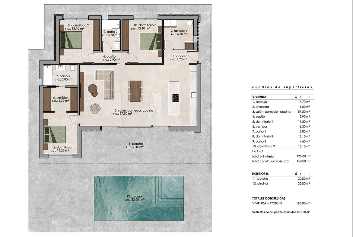 Custom Built New Villas in Pinoso (Alicante): Spacious Homes in Natural Surroundings New Build Villas Tailored to Your Lifestyle in Pinoso Discover a unique opportunity to build your dream home in the peaceful surroundings of Pinoso, located in the inland area of Alicante on the Costa Blanca. These modern independent villas are designed under a self build concept, allowing buyers to choose from different models, layouts and plots to create a fully personalized home. Pinoso is a charming Spanish town known for its vineyards, traditional culture and relaxed lifestyle. The area offers a perfect balance between nature and everyday convenience, with local shops, restaurants and services available nearby. It is an ideal destination for those seeking tranquility while remaining connected to larger towns and the coast. Flexible Villa Designs with Modern Architecture Buyers can choose between a variety of villa models offering 2 or 3 bedrooms and 2 or 3 bathrooms, with options for single or two storey layouts. Built areas range from approximately 100 m2 to 260 m2, adapting to different lifestyle needs. Each villa is set on spacious plots, particularly in rustic locations where plots start from 10.000 m2, providing privacy and open views of the surrounding countryside. High Quality Features and Energy Efficient Living All villas are built with high quality materials and include a private 8 by 4 meter swimming pool, fully equipped kitchen with appliances and complete air conditioning system with airzone technology. The homes also feature aerothermal systems for hot water, fully fitted bathrooms with mirrors and shower screens, and an A energy rating for maximum efficiency. For rustic plots, the properties include 24 photovoltaic solar panels, water purification systems where necessary and sustainable wastewater solutions. Urban plots benefit from connection to mains water and sewage systems. Outdoor areas are carefully finished with paved terraces, pool areas and a perimeter walkway, while plots include 3.000 m2 fencing, motorized vehicle access and landscaped surroundings. Custom Plot Selection and Self Build Process Several plots are available in different locations around Pinoso, each with its own price (for this advert, a plot with a cost of 55.000 eur has been considered, if chosen a different plot price, the final price will be recalculated accordingly). The construction is carried out under a self build system, where payments are made in stages as the project progresses. The estimated delivery time is approximately 10 months from the granting of the building license. Excellent Location with Good Connectivity Pinoso offers a strategic inland location with easy access to key destinations. Alicante Airport is approximately 60 km away, while the beaches of the Costa Blanca can be reached in around 65 km. Golf courses are located within a 40 to 50 km radius, and the cities of Elche and Alicante are both within comfortable driving distance. Ideal Investment or Permanent Residence These custom built villas provide an excellent opportunity to create a bespoke home in a peaceful and natural environment, with modern comforts and strong investment potential. Contact us today for more information and start designing your new villa in Pinoso.