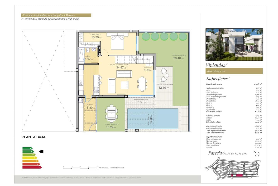 This residential benefits from wonderful sea views, comunal pool and social area and houses can be personalized with some extras like private pool, private solarium, underground garage, etc.