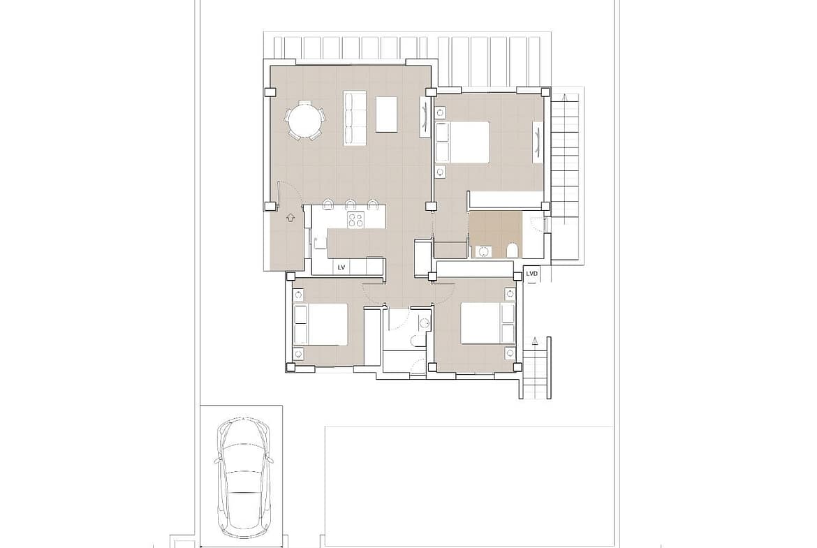 Each villa is built on a 432 m² private plot, offering a choice between single-level or two-level layouts, with the option to add a basement for additional space. All homes include: