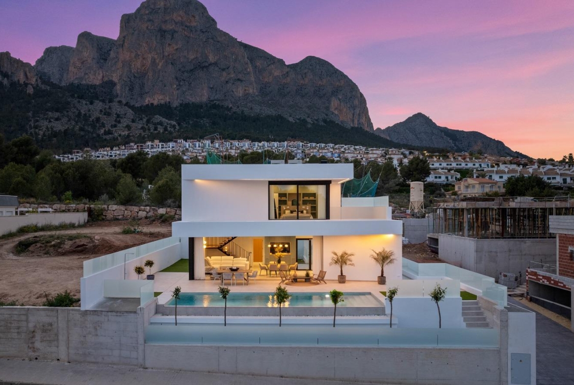 NEW BUILD VILLAS IN POLOP New Build residential of 46 villas in Polop. Modern villas build over 3 floors, has 3 bedrooms, 3 bathrooms, guest toilet, open plan modern kitchen with large living/dining room has direct access to the terrace with the pool, fitted wardrobes, basement with garage and storeroom, air conditioning, white goods. The city of Polop offers an amazing range of options for lovers of the great outdoors surrounded by nature and unparalleled peace. The municipality enjoys a Mediterranean climate with cooler temperatures and cleaner air, located less than 10 kilometres from Benidorm, Altea and their beaches. It stretches from the rivers Guadalest and Algar to the town of Villajoyosa, including the beaches of Albir and Benidorm; inland it borders Callosa and Guadalest.
