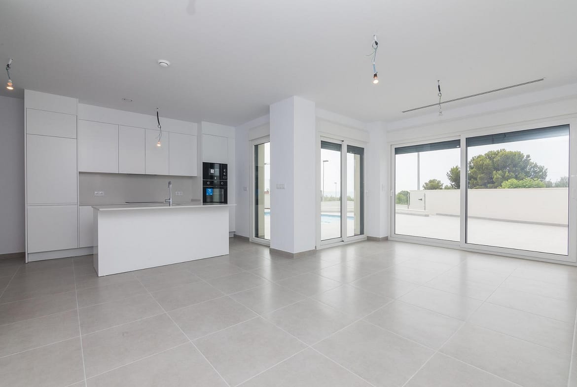 MEDITERRANEAN IN PURE STATE, INSIDE AND OUTSIDE YOUR HOME Halfway between the Sleeping Lion Peak and the Bay of Altea, Polop de la Marina is the municipality that houses this newly built villa. Located in a quiet residential area, surrounded by an incomparable environment, this villa is the perfect place to take a break after a day enjoying the Mediterranean in its purest form. Due to its location, just a few minutes from the best coves and white sand beaches (El Albir, Altea, Calpe and Villajoyosa) and close to excellent golf courses, sports centers and theme parks, this villa will become your ideal refuge to explore the culture, nature and gastronomy of the Costa Blanca. Its architectural design and wide distribution on one floor, allows that, through huge windows, all rooms have direct access to the private pool and barbecue area. In addition, the spectacular 60 m2 solarium with direct access from the garden will captivate you with its sunsets and views of the Mediterranean. With 400 m2 of plot and 100 m2 of surface the villa is distributed in living room – fully equipped kitchen, 3 double bedrooms and 2 bathrooms, both with underfloor heating system. The pre-installation of air conditioning and the best finishes on the market will make you enjoy all the comforts you deserve in a genuinely Mediterranean environment.