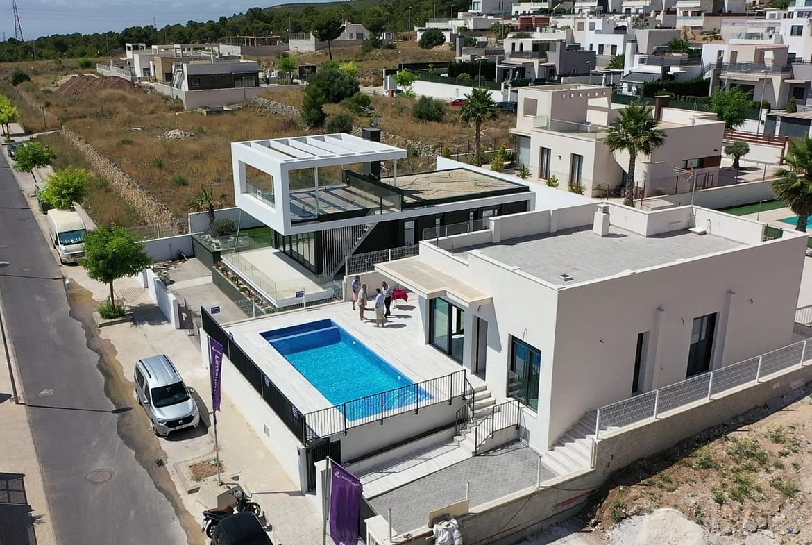 BRAND NEW VILLAS ON ONE LEVEL IN POLOP !!! VILLA thought and designed to make the most of the spaces, on a single floor with a minimum plot of 400 m2, independent plot, closed perimeter area, private pool, parking area, motorized access, garden finished with gravel and ornamental plants. The VILLA is distributed in ONE SINGLE FLOOR plus SOLARIUM distributed in open kitchen, living room, 3 bedrooms, 2 bathrooms and a large terrace. Polop is a typical Spanish town 8 km from Benidorm and its beaches and 4 km from La Nucía, considered the city of sports. Mount Ponoig behind these houses not only creates a very favorable microclimate in the area, but also gives you the chance to go on beautiful mountain excursions.