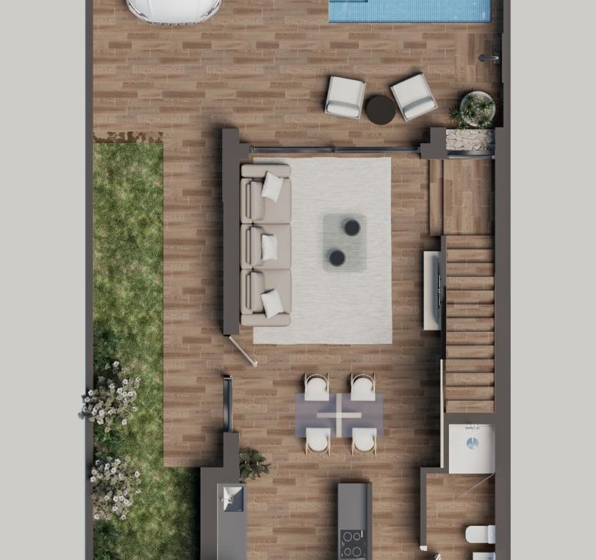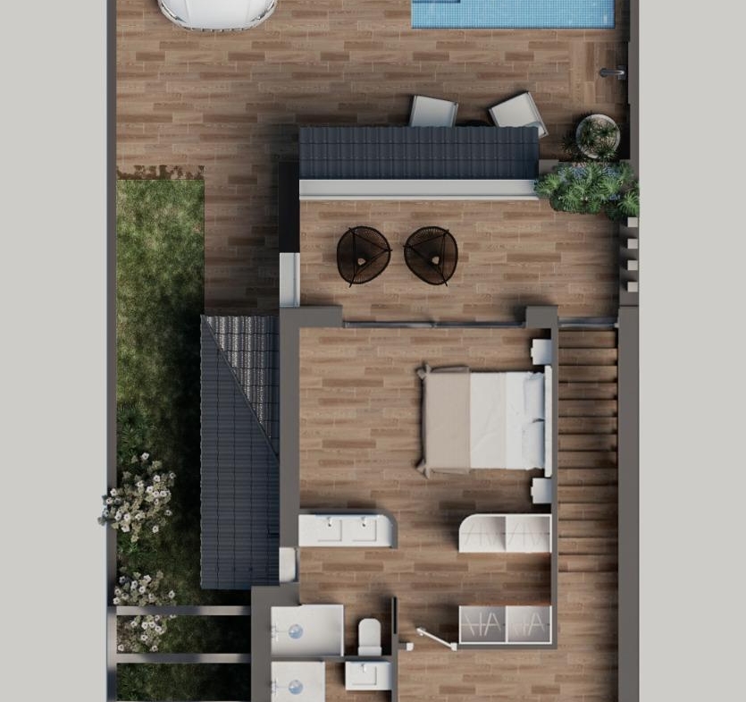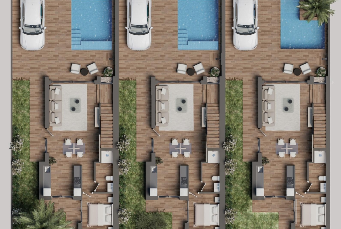 Each villa is set on a private plot of approximately 200 square meters, providing ample space for outdoor living and relaxation. The property includes a private pool, perfect for enjoying warm Mediterranean days, and a designated parking area. An expansive private solarium offers a beautiful space for sunbathing, entertaining, or simply enjoying the peaceful surroundings. These villas offer a high-quality lifestyle with premium amenities and modern comforts in one of Spain’s most desirable coastal areas.