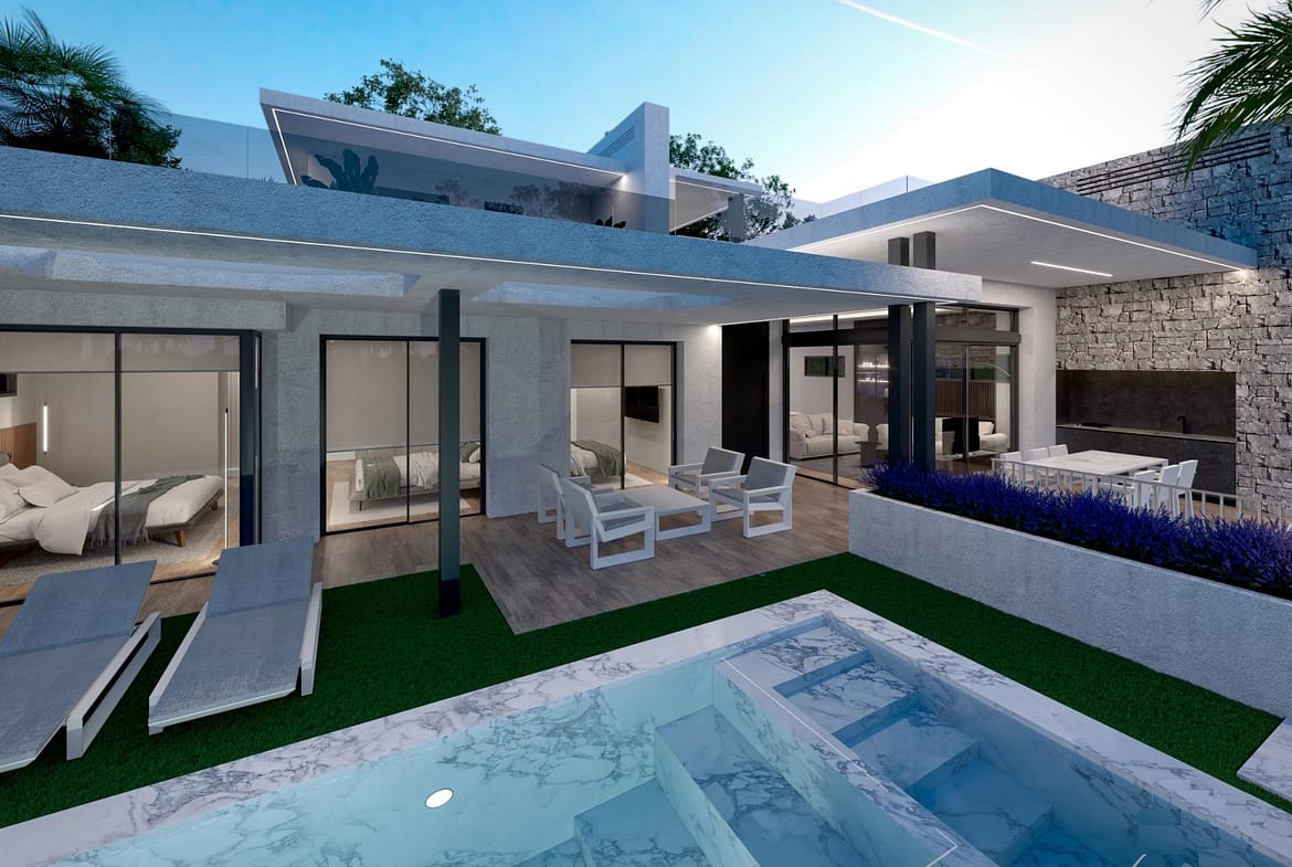 Frontline Lake Luxury Villa in Santa Rosalia Lake and Life Resort Murcia Exclusive New Build Villa in a Unique Resort Setting Discover this exceptional new build villa located frontline to the lake in the prestigious Santa Rosalia Lake and Life Resort in the Region of Murcia. Set on a generous 500 m2 plot, this property offers a rare opportunity to enjoy modern architecture, privacy and a resort lifestyle in one of the most innovative developments in southern Spain. The villa is distributed over ground floor, basement and rooftop solarium, combining contemporary design with spacious living areas and high quality finishes. Its privileged position provides direct views of the stunning artificial lake, creating a peaceful and exclusive environment. Spacious Design with Double Height Living Area The main floor features a bright open plan living and dining area with a spectacular double height ceiling, enhancing the sense of space and natural light. The modern kitchen comes fully equipped with BOSCH appliances and connects seamlessly with the outdoor terrace and private swimming pool. The property includes three bedrooms and three bathrooms, as well as a guest toilet. The layout is designed to provide both comfort and functionality, making it ideal for family living or entertaining guests. Basement with Natural Light and Customization Options A standout feature of this villa is the spacious basement with natural light provided by English patios. This level offers great flexibility and can be customized into additional living areas such as a gym, home cinema, guest accommodation or office. The basement includes pre installation for air conditioning and connections for water and electricity, allowing owners to tailor the space according to their needs. Private Solarium and Outdoor Living Spaces The rooftop solarium provides an ideal space for relaxation and outdoor living, with pre installation for a jacuzzi and open views over the lake and surrounding resort. The villa also includes a private swimming pool and landscaped outdoor areas designed to enjoy the Mediterranean climate year round. High Quality Features and Energy Efficiency The property is built with premium materials and includes a reinforced security entrance door, ducted air conditioning, six photovoltaic solar panels and high quality finishes throughout. Resort Lifestyle with Exceptional Amenities Santa Rosalia Lake and Life Resort is a gated community with 24 hour security, designed around a 126000 m2 green area. At its heart lies a spectacular crystal clear lake of nearly 17000 m2, surrounded by white sandy beaches, palm trees and leisure areas. Residents can enjoy walking and cycling paths, sports facilities, paddle and tennis courts, mini golf, dog parks, clubhouse and beach style bars, creating a unique lifestyle experience. Prime Location Near Beaches and Golf Courses The resort is ideally located less than 4 km from the beaches of the Mar Menor and the town of Los Alcazares. Cartagena is just 15 km away and Murcia International Airport is 22 km away. Several golf courses are also located within a short drive. Ideal Investment and Luxury Lifestyle Opportunity This frontline lake villa offers a unique opportunity to enjoy luxury living in a resort environment with exceptional amenities and strong investment potential. Contact us today for more information or to arrange a private viewing of this exclusive villa in Santa Rosalia Lake and Life Resort.