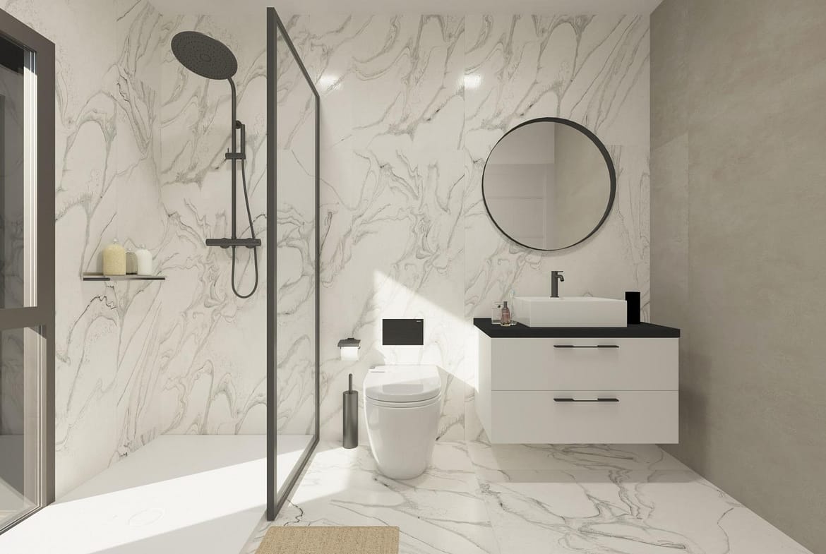 These one-story villas have been thoughtfully designed for maximum comfort and ease of living. With an open-plan layout, they provide ample space for relaxation and entertainment. The villas feature high-quality finishes including thermal break aluminum windows, Climalit double glazing, and pre-installation for ducted air conditioning. For added convenience, the homes include electric shutters, modern bathrooms with resin shower trays and built-in black faucets, and private parking in the underground garage with additional storage space.