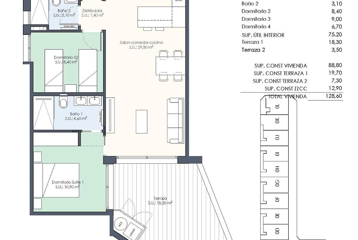 Residential made up of 35 apartments and penthouses with 2, 3 and 4 bedrooms and 2 bathrooms, open plan kitchen with the lounge area, fitted wardrobes, terraces.