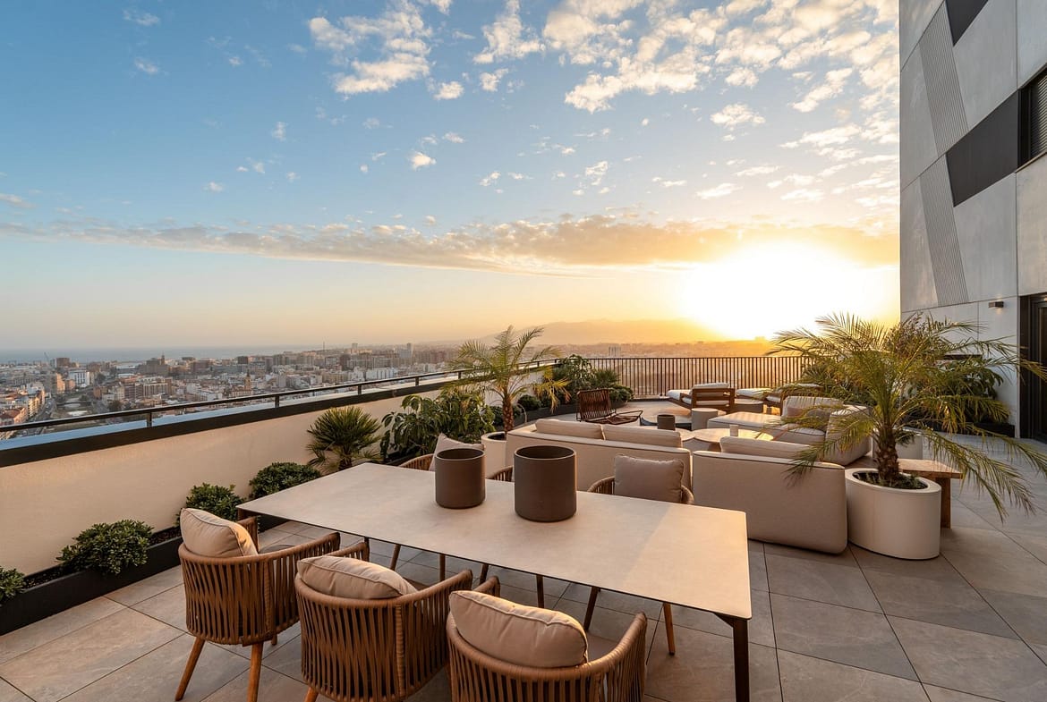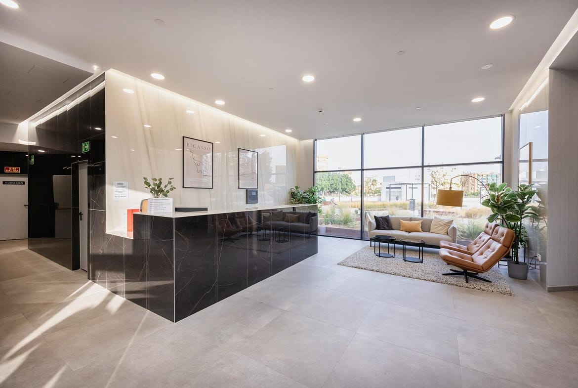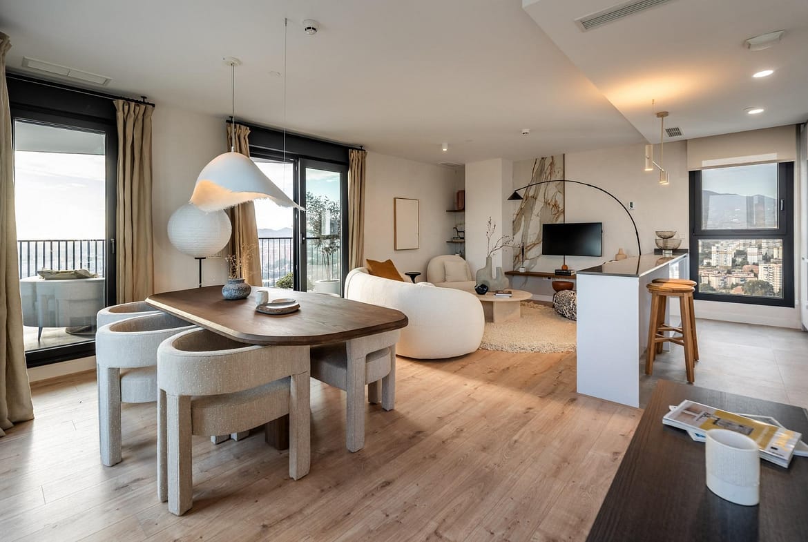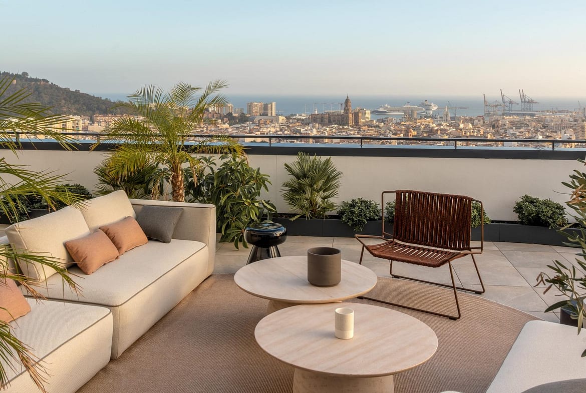 1 to 3 bedroom flats in a residential complex in the heart of Málaga with two shared basement floors for garages and communal areas on the ground floor. A building with the best views of the Costa del Sol.