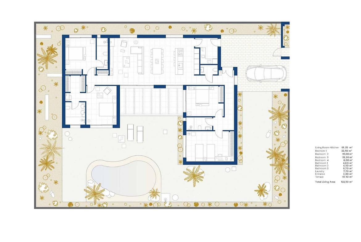 Contemporary One Level Villas in Altaona Golf Resort Murcia Prime Golf Resort Location Near Murcia City Discover this exclusive collection of new build detached villas located in the prestigious Altaona Golf Resort in Murcia. Set within a secure and peaceful environment surrounded by nature and an 18 hole golf course, this residential community offers the perfect balance between tranquility and accessibility. Altaona Golf is just 15 km from Murcia city center, where you will find shopping centers, restaurants, schools and medical services, while the beaches of the Costa Calida are only 20 km away. Murcia Corvera Airport is conveniently located 15 km from the resort, making this an ideal location for both permanent living and holiday homes. Modern Single Level Design with Private Garden and Pool These elegant villas are designed on one level for maximum comfort and functionality. Buyers can choose between 2, 3 or 4 bedrooms and 2 or 3 bathrooms plus a guest toilet. Each home features an open plan kitchen and living area that connects seamlessly to the outdoor terrace and private landscaped garden with swimming pool. A private parking space is included within the plot, ensuring convenience and privacy. Energy Efficient Homes with High Quality Features All villas hold an Energy Certificate Rating A, ensuring excellent energy efficiency and low running costs. The properties include ducted air conditioning with heat pump throughout the house except bathrooms, and electric underfloor heating in the living room and bathrooms with independent thermostats by zone. A mechanical ventilation system renews the air in kitchens, bathrooms, laundry room and guest toilet, improving indoor comfort. The kitchen comes equipped with an extractor hood and electric induction hob. LED lighting is included in the living room, hallway and exterior areas, while the remaining rooms are prepared for the owner to customize lighting. Bedrooms are fitted with USB charging points for added convenience. Smart Home Technology and Secure Community Each villa includes a video intercom system, smart home automation with two intelligent switches, and motorized vehicle access to the gated community. The private garden is delivered landscaped with a drip irrigation system and an inviting private swimming pool, ideal for enjoying the Mediterranean climate all year round. Distances to Key Points of Interest Altaona Golf Course 0.1 km Murcia city center 15 km Beaches of Los Alcazares and Mar Menor 20 km Murcia Corvera Airport 15 km Shopping centers and services 10 km Hacienda Riquelme Golf Resort 12 km Your New Lifestyle in Altaona Golf Awaits Enjoy golf, nature, security and modern comfort in one of the most attractive resorts in the Murcia region. Contact us today to receive more information or to arrange a visit to these beautiful new build villas.