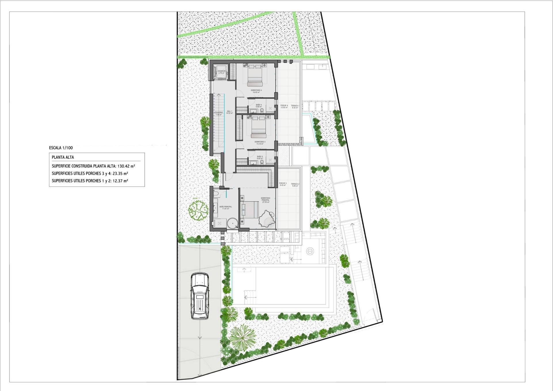 • Porcelanosa 100×100 cm and parquet wooden floors in the bedrooms.