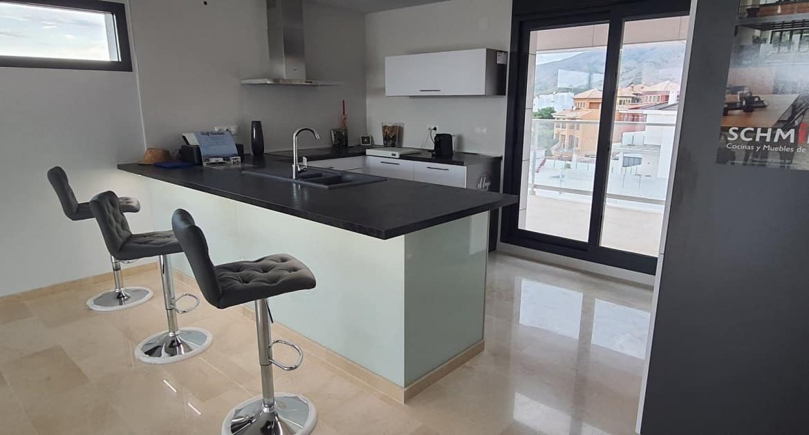 MODERN VILLA WITHIN WALKING DISTANCE TO BENIDORM!!! This villa has been built with luxury finishes such as ventilated facade for greater thermal insulation and lower energy consumption and solarium. High standing construction offering an avant-garde design, functional and elegant and elegant, comfortable spaces and high quality finishes. Large plot and private swimming pool. Its optimal orientation and its large windows allow the entry of natural light throughout the day. Its elevated and gently sloping position guarantees great sea views in the distance. This is a luxury home with spacious, light-filled rooms and spaces designed to be lived in, open concept on the ground floor, with exceptional views, just a stone’s throw from the sea and the mountains. A dream of many… within the reach of a few.