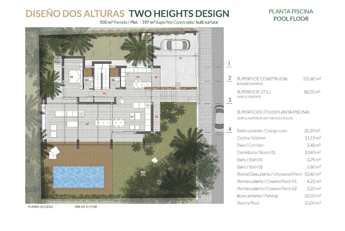 Villa with 4 bedrooms and 4 bathrooms, fully equipped. Built on a large plot to enjoy its garden and private pool, Aerothermal system and Air Conditioning.