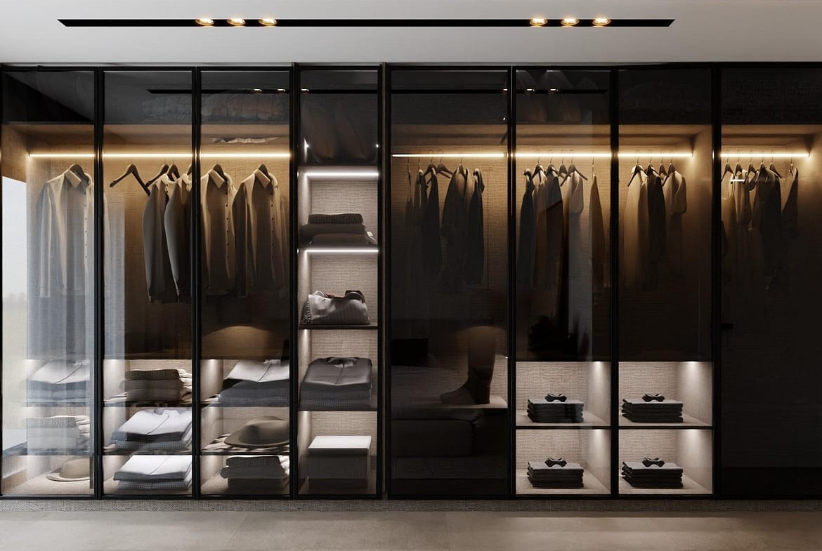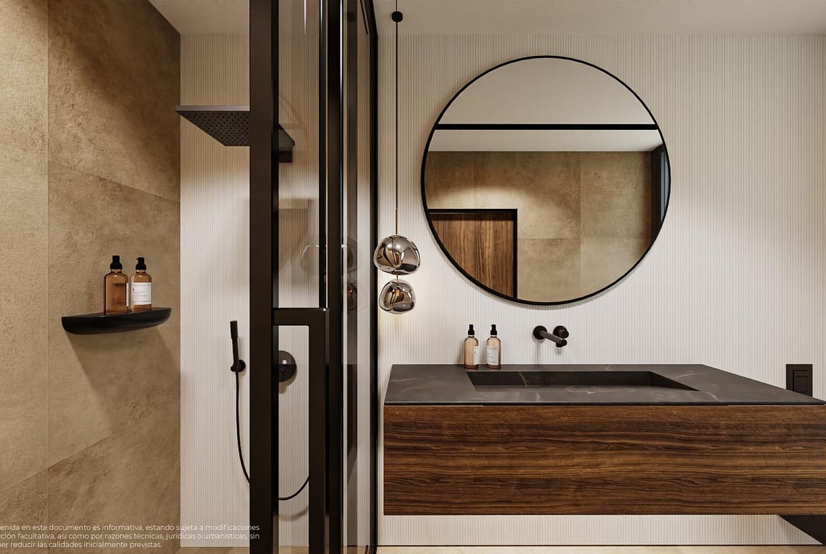 Designer bathrooms with LED lighting, suspended vanities, and sliding safety glass shower screens