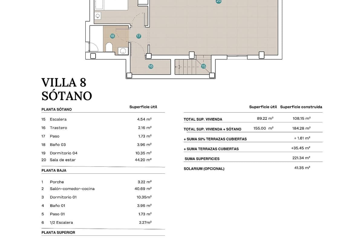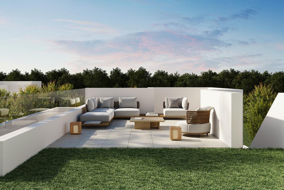 Each villa is built on a 432 m² private plot, offering a choice between single-level or two-level layouts, with the option to add a basement for additional space. All homes include: