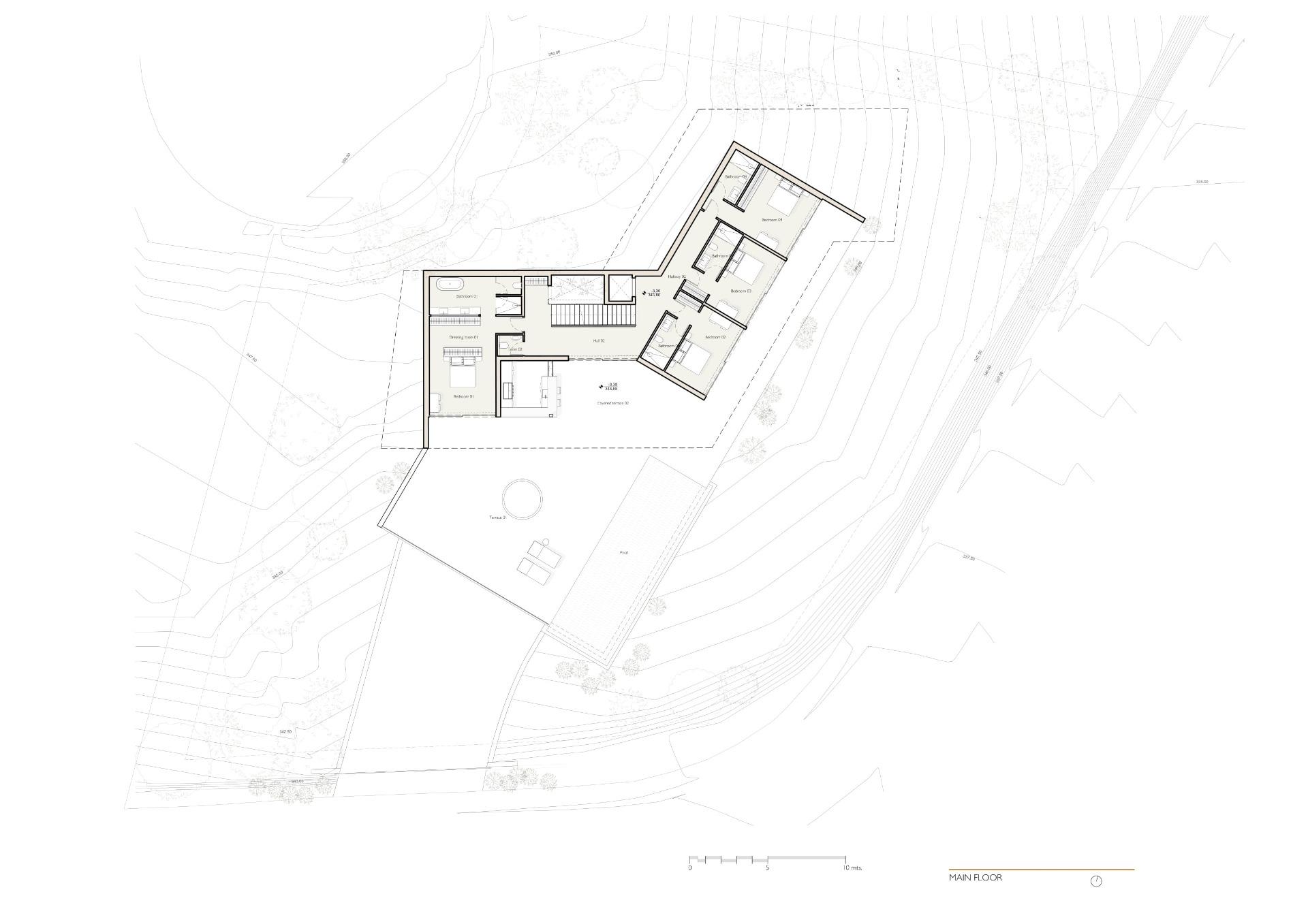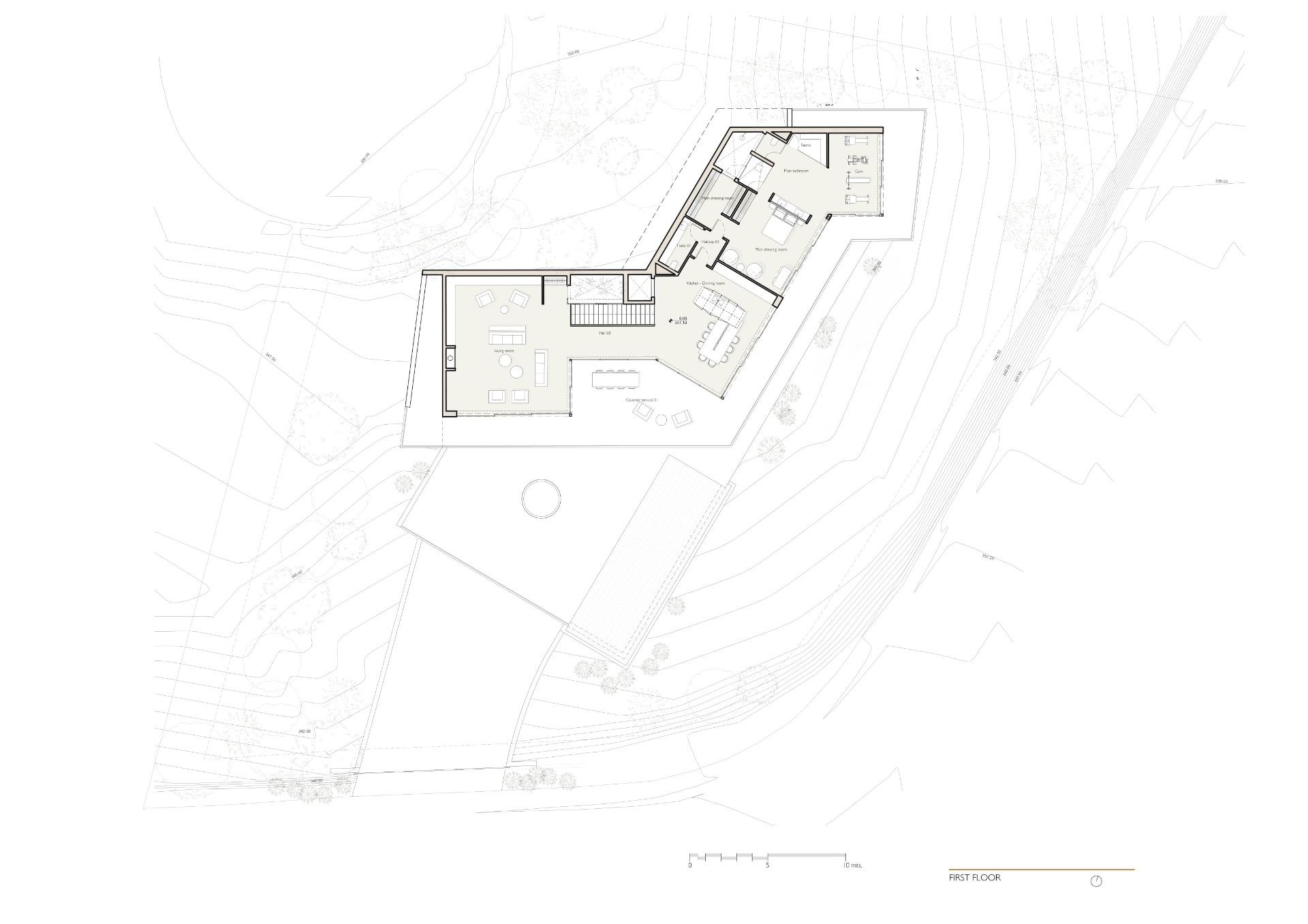 The villa includes: 5 bedrooms, 5 en-suite bathrooms, 2 guest toilets, extensive terraces, an integrated outdoor lounge area and a stunning swimming pool. Villa radiates sophisticated charm with its use of noble materials and top-tier specifications. It achieves an ideal synergy between state-of-the-art design and ecological sensitivity, featuring a minimal environmental footprint, green roofs, optional solar energy, and landscaping designed to thrive in drought conditions.