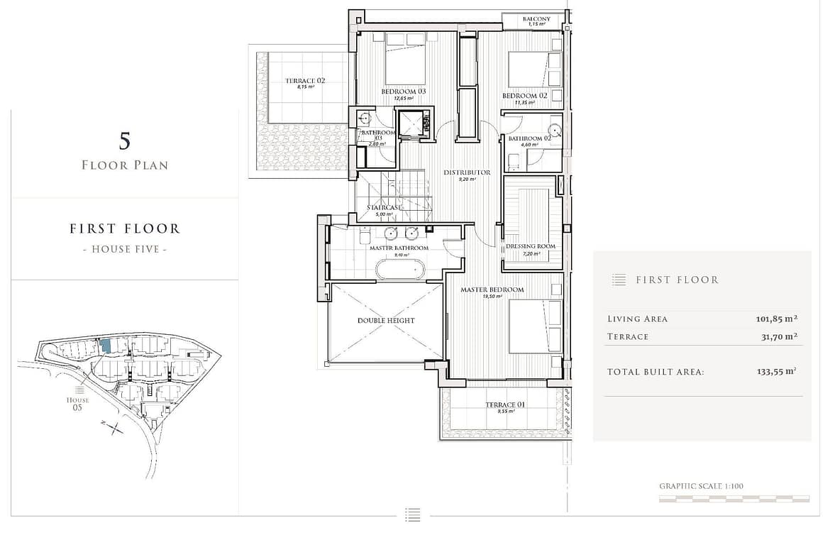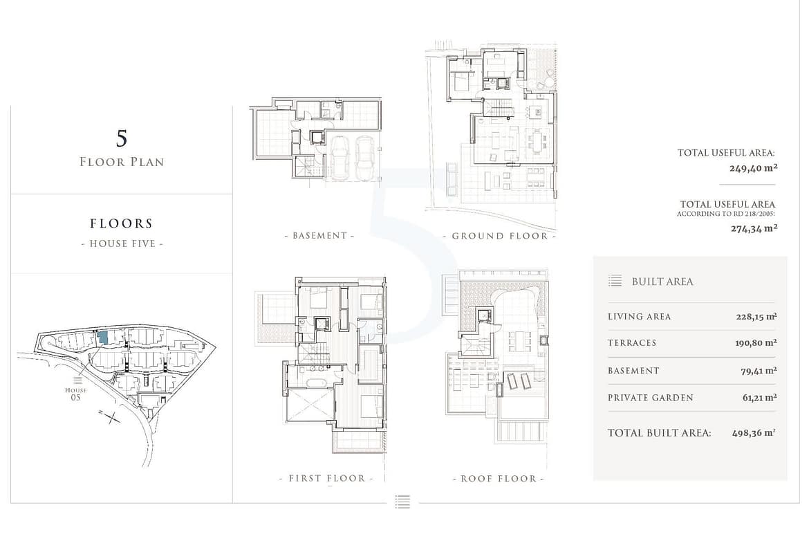 Each townhouse boasts a multi-level design, allowing you to fully enjoy panoramic sea views from various points of the property. With two layout options available, choose between 4 or 5-bedroom homes spread across basement, ground, first floors, and a solarium. The expansive interiors feature high-end finishes, large windows, and open-plan designs, seamlessly blending indoor and outdoor living spaces. Each home also includes a private underground garage for added convenience.