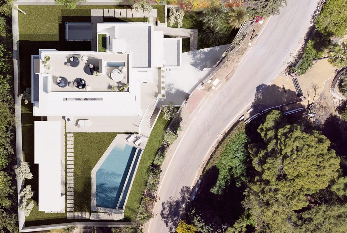 This stunning mansion is a masterpiece of architecture, designed to integrate seamlessly with its natural surroundings. Offering six bedrooms and seven bathrooms, the property includes ample space for both intimate gatherings and larger entertaining. The mansion boasts expansive indoor and outdoor areas, from covered terraces to an inviting solarium and a large poolside terrace perfect for sunbathing. The master bedroom features direct access to a private terrace, providing sweeping views of the Mediterranean.